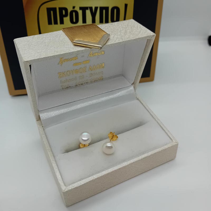 Κομψά και αγαπητά σε κάθε ηλικία, μίνιμαλ σκουλαρίκια από επιχρυσωμένο ασήμι με λευκή πέρλα με ελαφρώς πλατιά επάνω όψη.