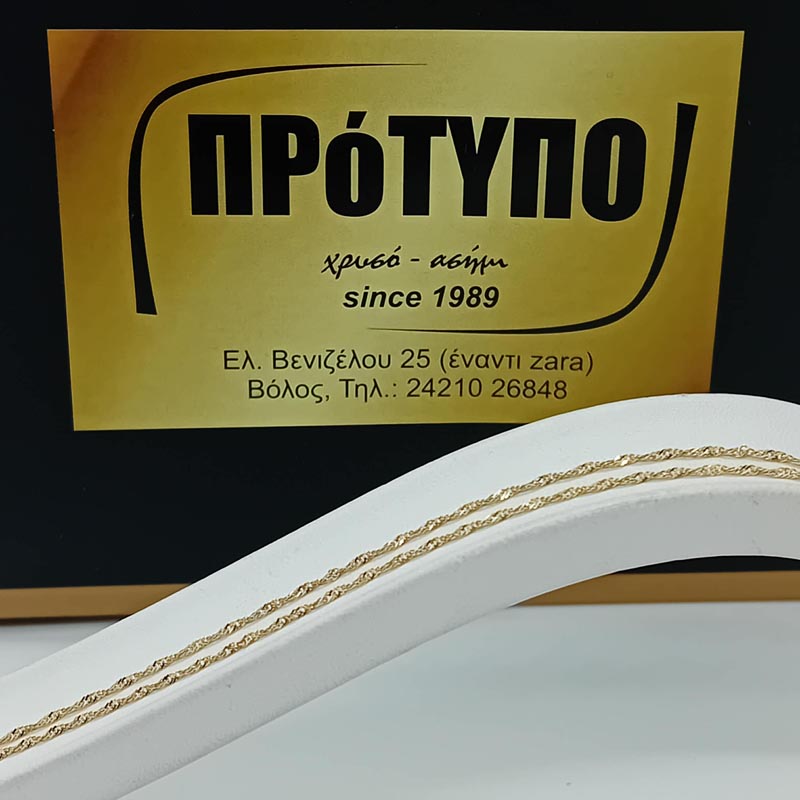 Λεπτή κομψή αλυσίδα λαιμού στριφτή από ΧΡΥΣΟ 14 καρατίων.