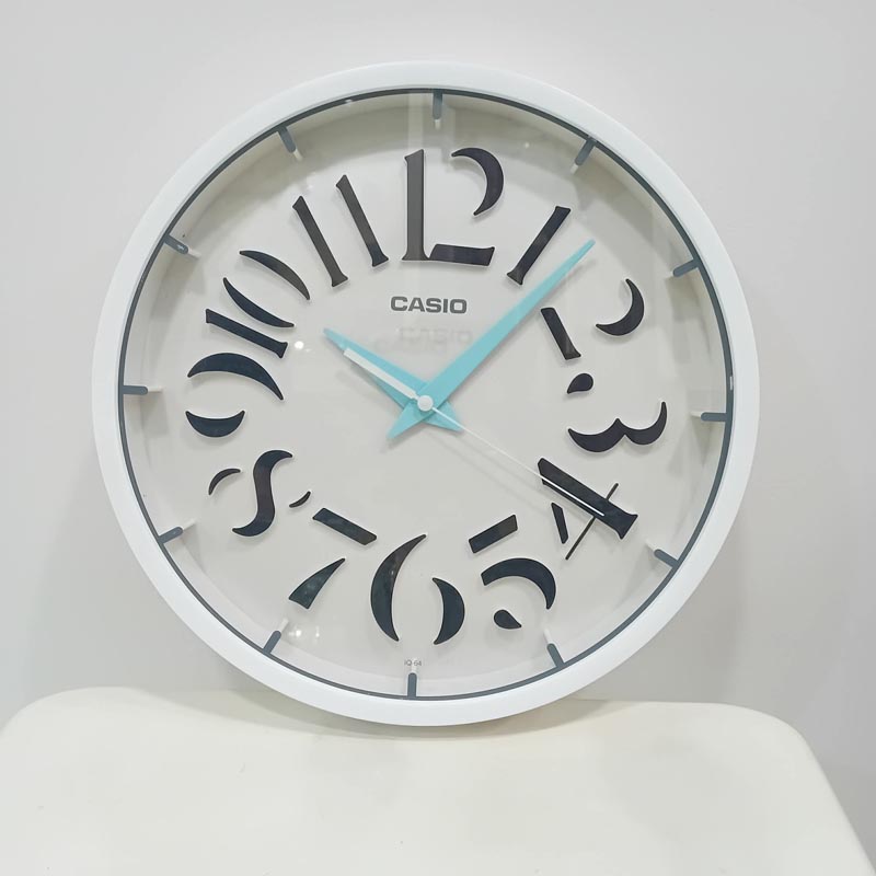 Μοντέρνο μίνιμαλ ρολόι τοίχου κατάλευκο καντράν και κατάλευκο πλαίσιο , με μαύρα πολύ μεγάλα ευανάγνωστα νούμερα και δείκτες σε απαλό γαλάζιο, ιδανικό για μοντέρνους χώρους, υπνοδωμάτια, γραφεία κλπ.
