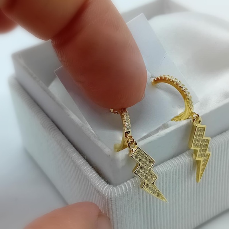 Για ιδιαίτερες μοντέρνες extreme εμφανίσεις που θα συζητηθούν! Σκουλαρίκια επιχρυσωμένο ασήμι με ζιργκόν, κρεμαστά, μακριά, με design κρίκους στους οποίους κρέμεται ένας κεραυνός .