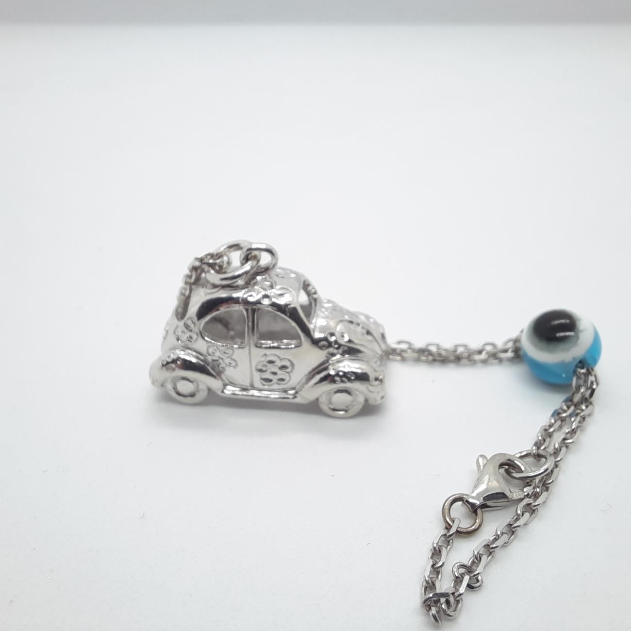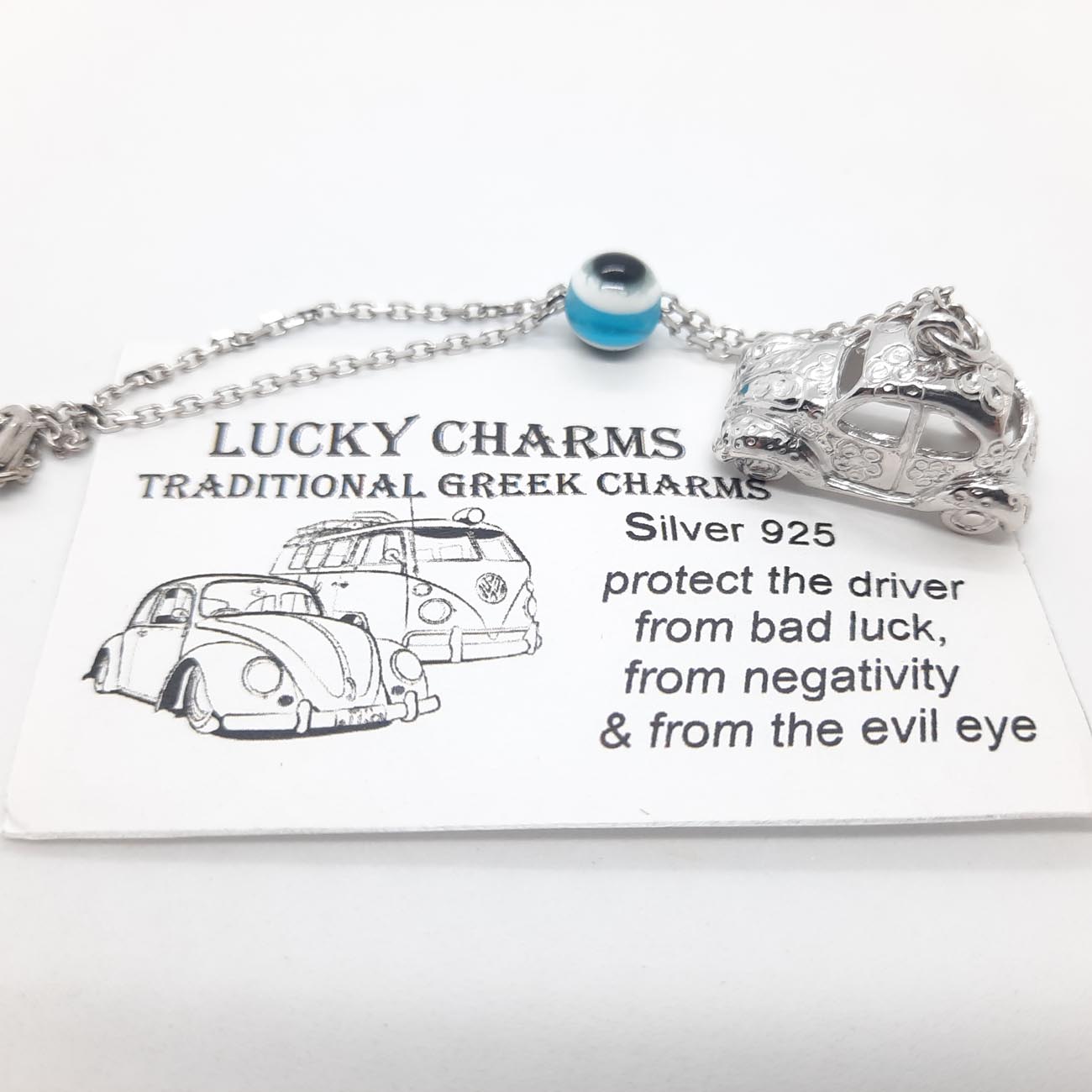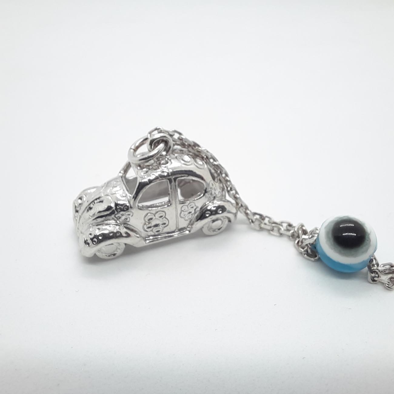Επειδή όσους αγαπάμε τους θέλουμε πάντα κοντά μας... Ασημένιο γούρι οχήματος για καλό και ασφαλές ταξίδι σε σχέδιο σκαραβαίος με σκαλισμένα λουλουδάκια.