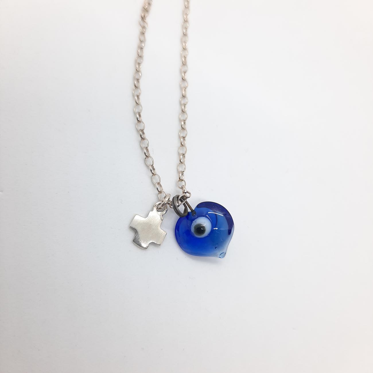 Καλό και ασφαλές ταξίδι με σταυρό από ασήμι και τυχερό ματόχαντρο σε σχήμα καρδιάς!
