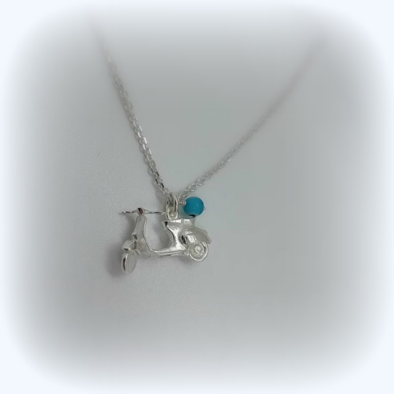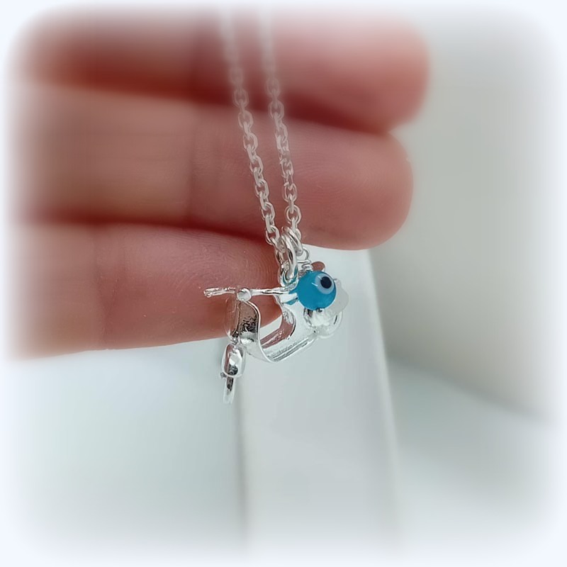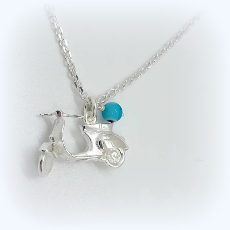 Γούρι για τους ρομαντικούς λάτρεις της διάσημης ιστορικής βέσπας: από ασήμι 925 τρισδιάστατη βέσπα με γαλάζιο "ματάκι" .
