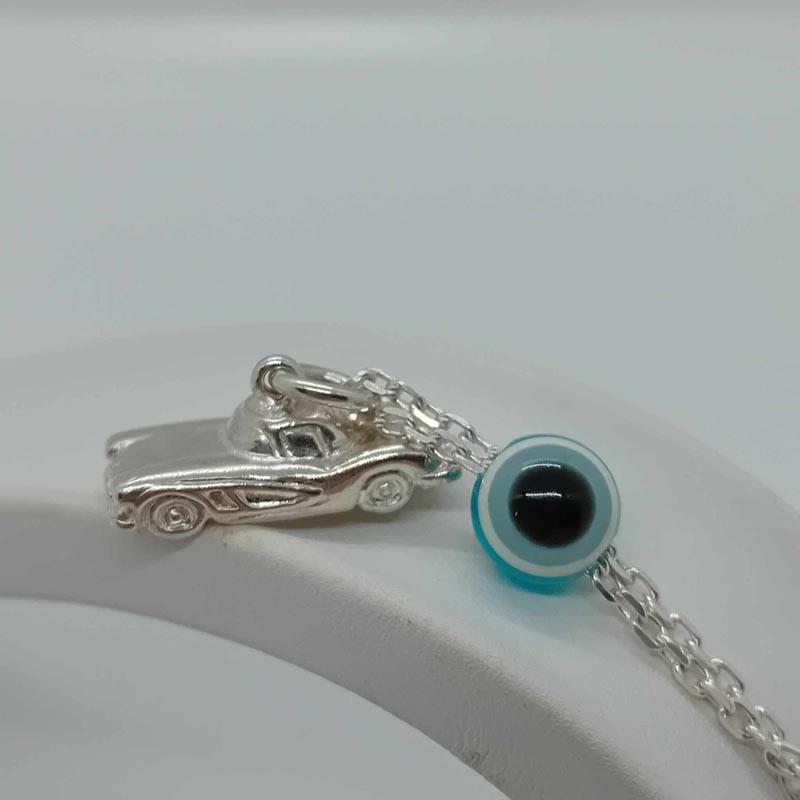 Ασφαλή χιλιόμετρα με όμορφο γούρι σε design αυτοκινήτου τρισδιάστατο από ασήμι 9.25 και ματόχαντρο στην αλυσίδα.