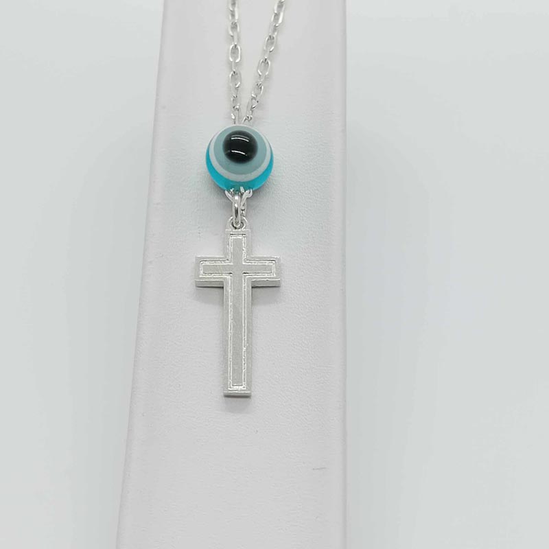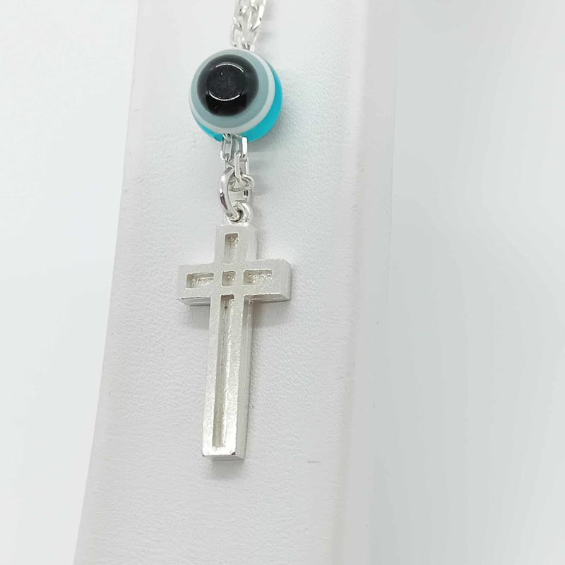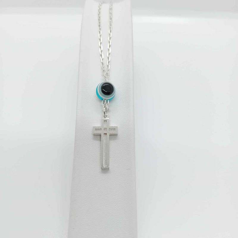 Σταυρός ορθόδοξος, μοντέρνο design, διπλής όψης, σε αλυσίδα, με μεγάλο ματόχαντρο , γούρι για κάθε οδηγό, από ασήμι 9.25.
