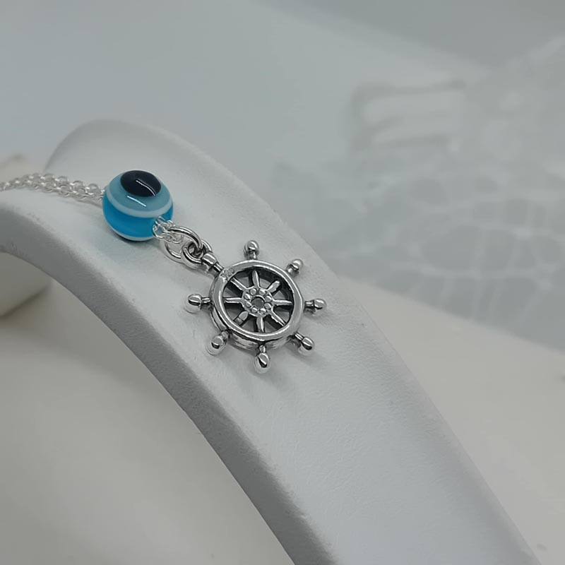 ΤΙΜΟΝΙΕΡΑ από ασήμι γούρι με αλυσίδα και μεγάλο ματόχαντρο , ιδανικό αξεσουάρ για το σκάφος !!!