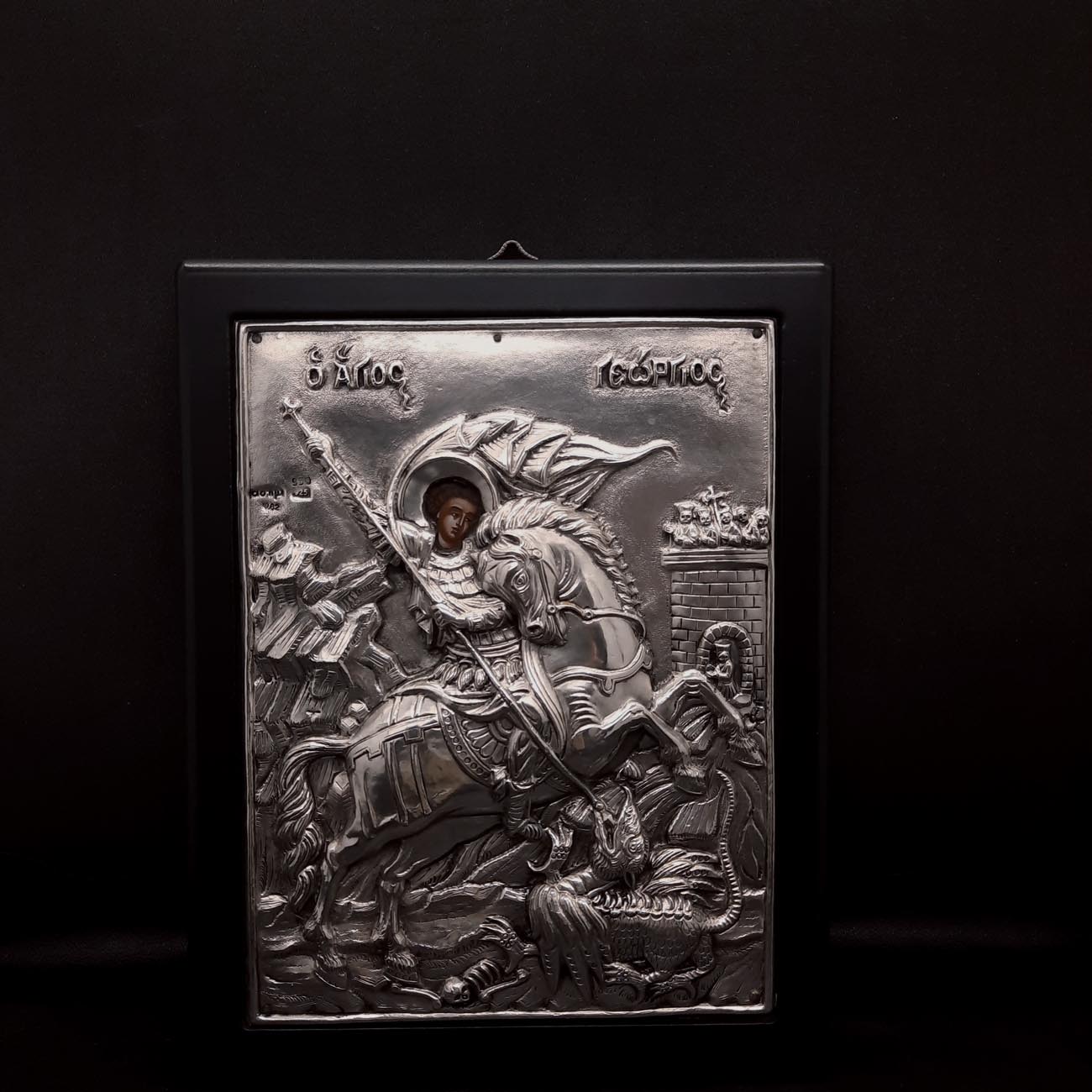 Ασημένια εικόνα με πλαίσιο από μασίφ ξύλο ΑΓΙΟΣ ΓΕΩΡΓΙΟΣ