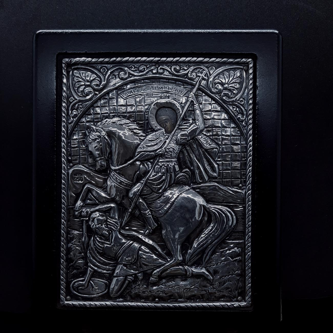 Ασημένια εικόνα με πλαίσιο από μασίφ ξύλο ΑΓΙΟΣ ΔΗΜΗΤΡΙΟΣ