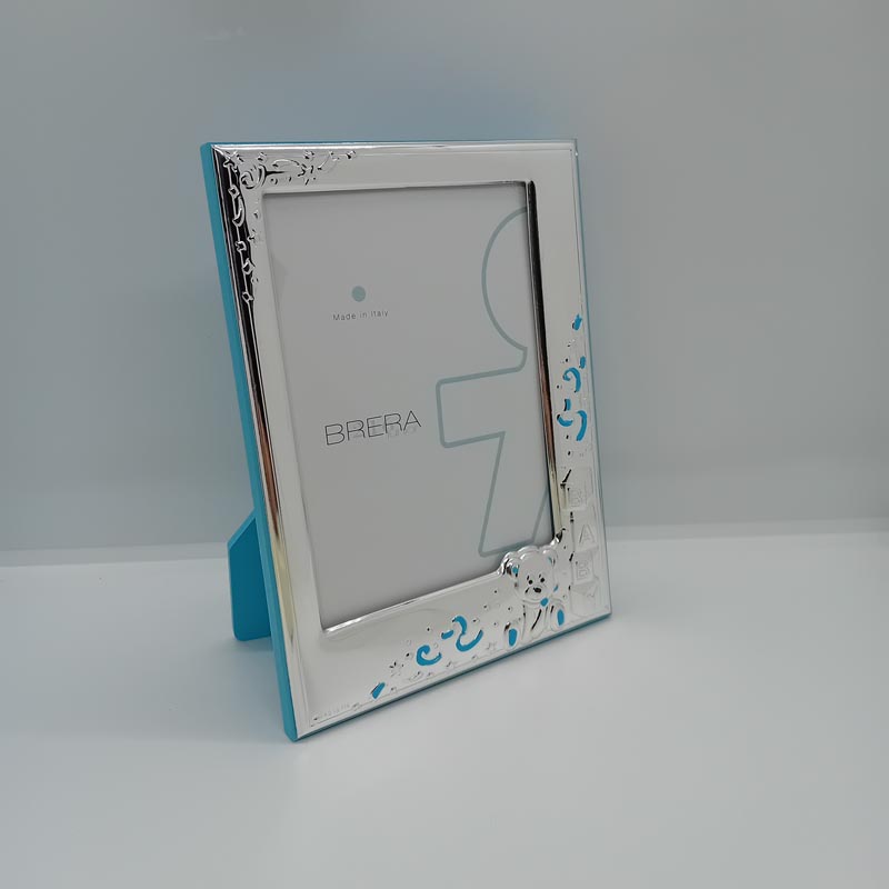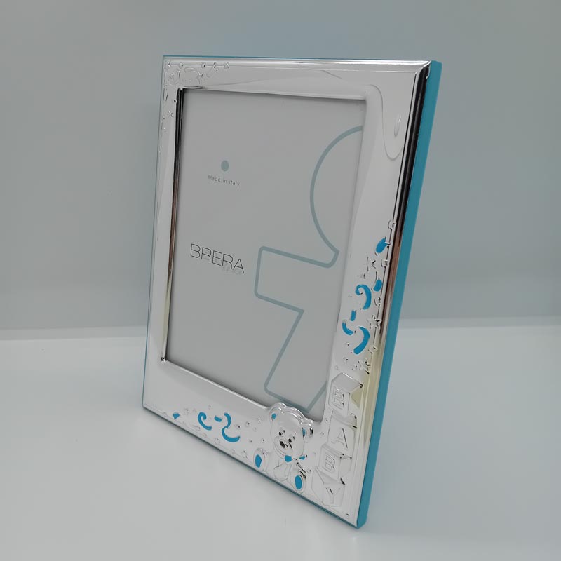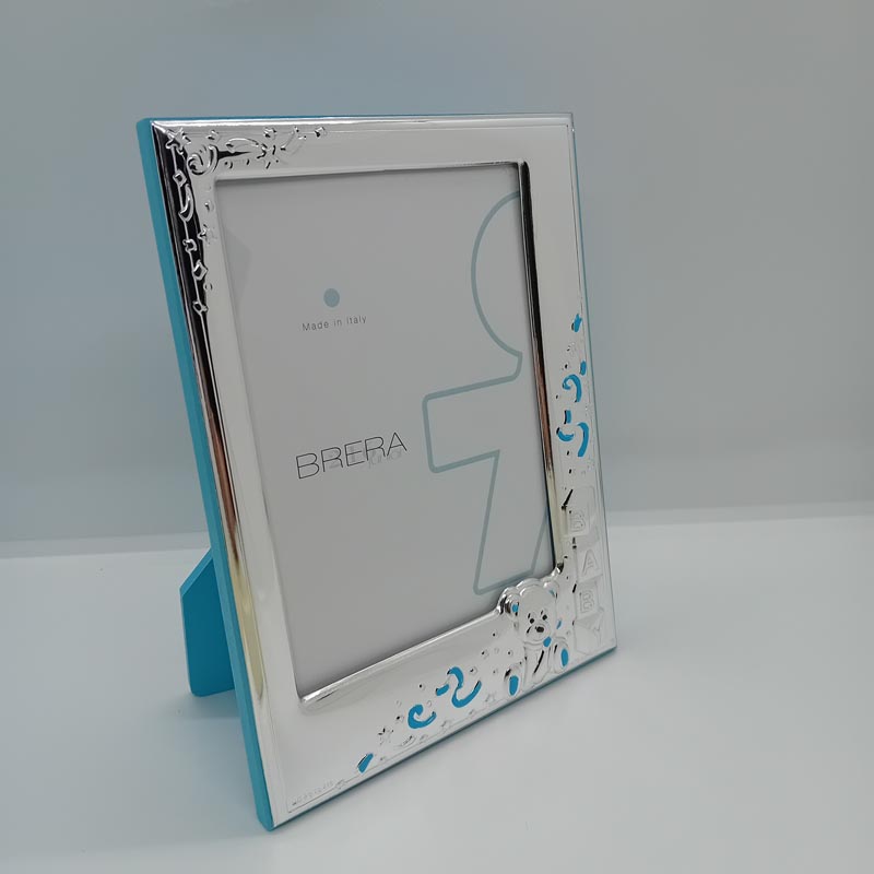 Κορνίζα ΑΣΗΜΕΝΙΑ παιδική, με ανάγλυφο αρκουδάκι baby, ξύλινη σε γαλάζια απόχρωση.