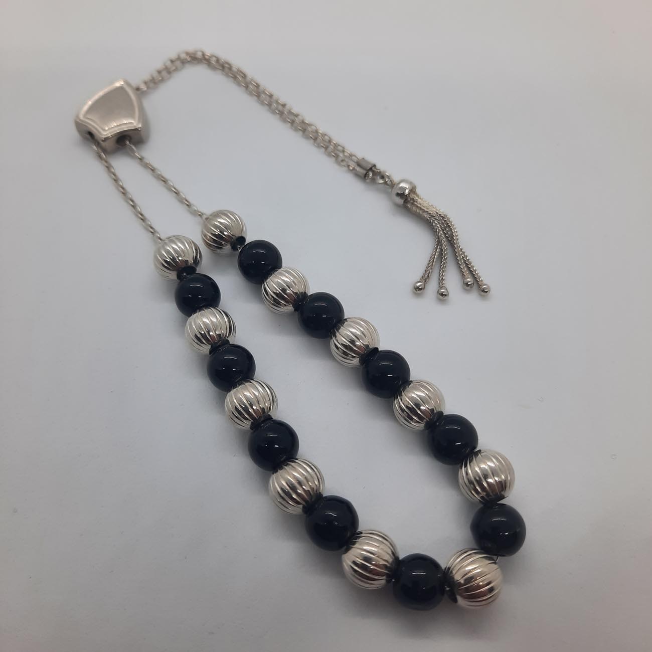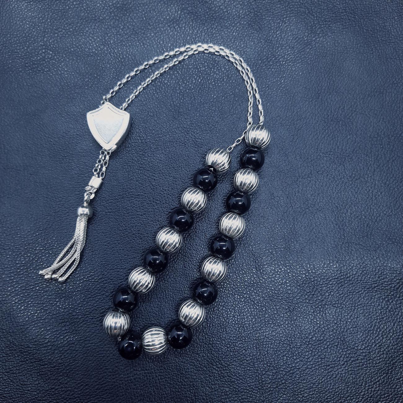 Ένα εντυπωσιακό κομμάτι για τους λάτρεις του κομπολογιού από ασημένιες σκαλιστές μπάλες , ασήμι 925, που εναλλάσσονται με μαύρες.