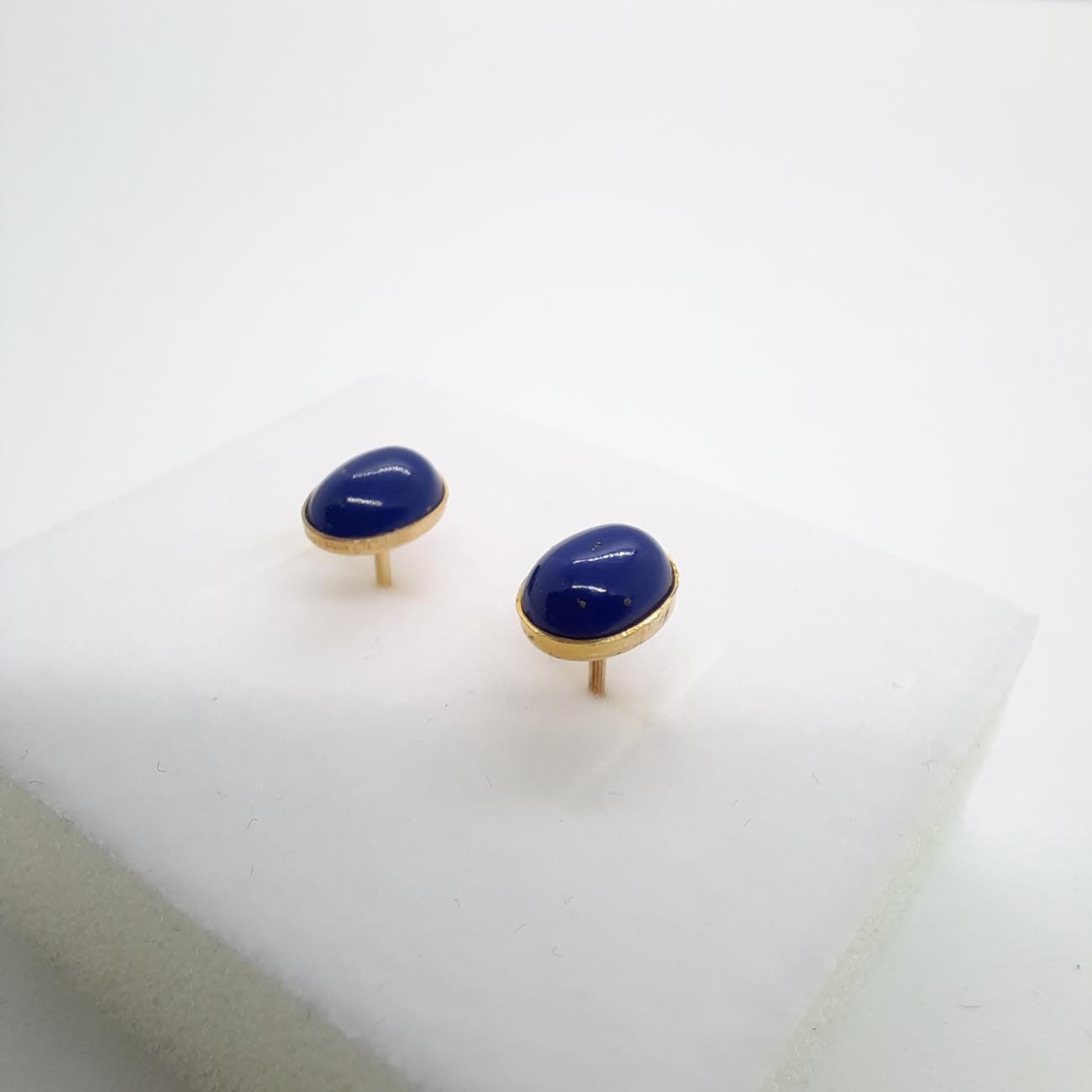 Ο χρυσός 14 καρατίων δένει με τον γοητευτικό σοφιστικέ ημιπολύτιμο λίθο λάπις λάζουλι και δημιουργεί ένα σοβαρό διακριτικό και ευκολοφόρετο σκουλαρίκι, μέρα νύχτα, ιδανικό και για επαγγελματικές εμφανίσεις.