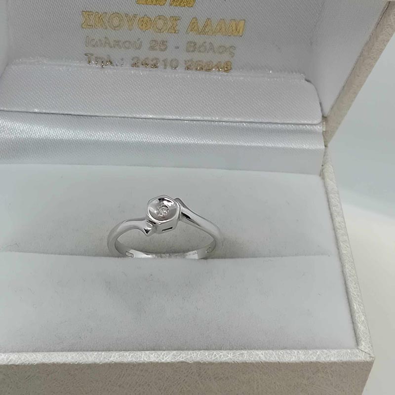 Δαχτυλίδι μονόπετρο λευκόχρυσο trendy