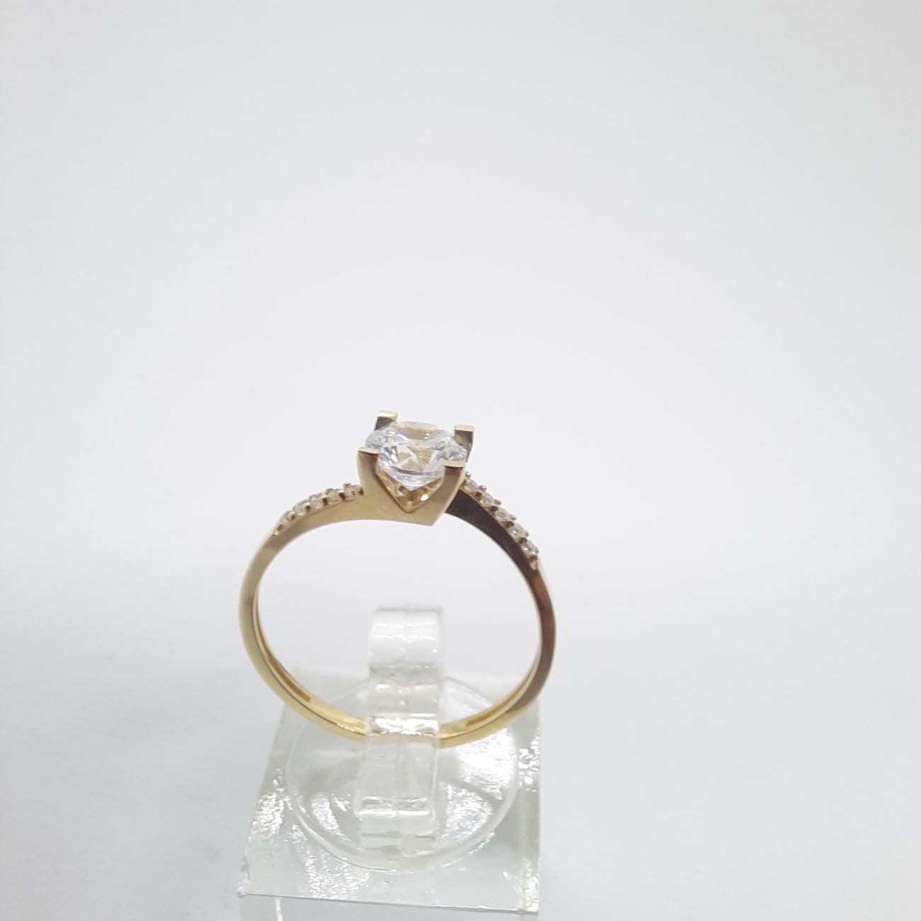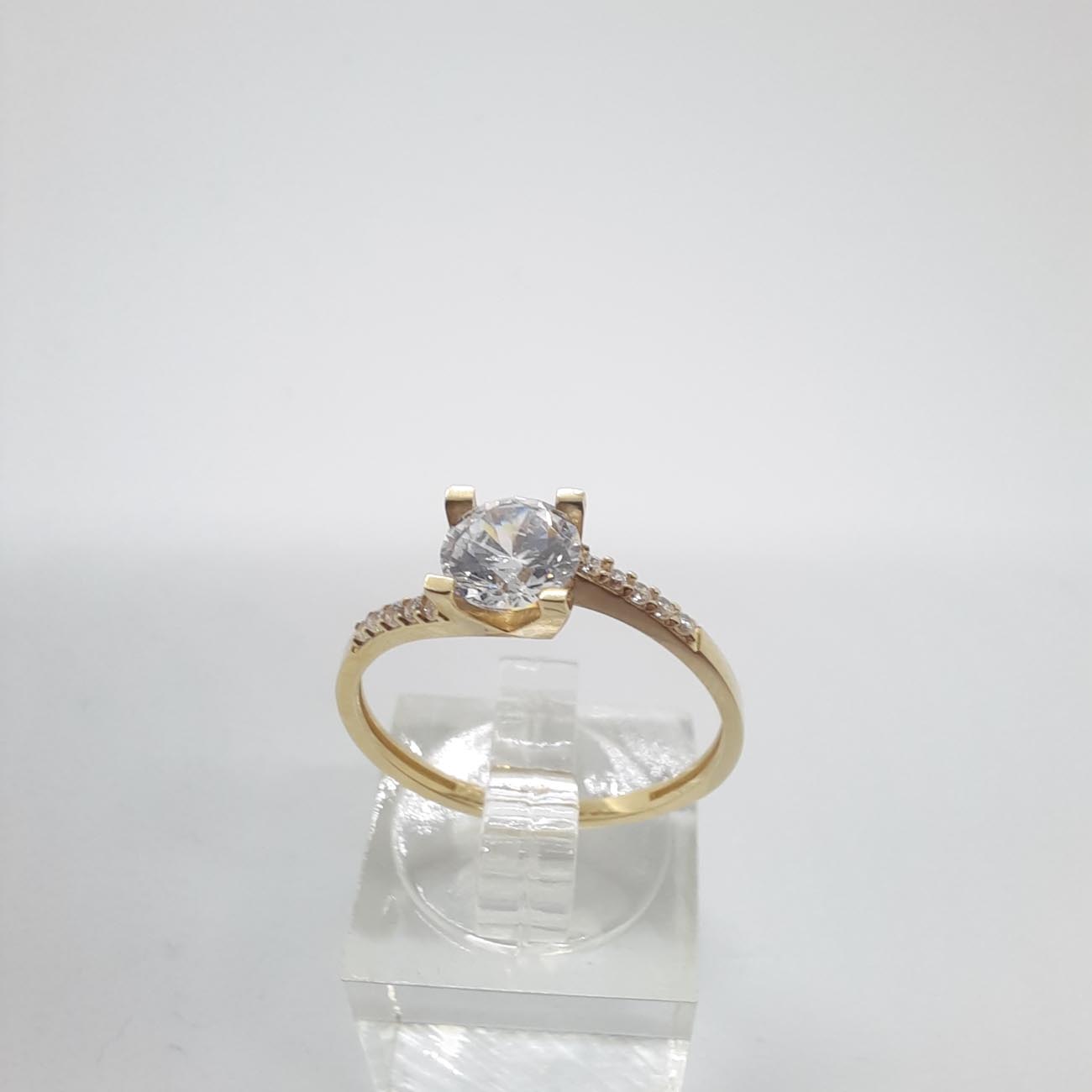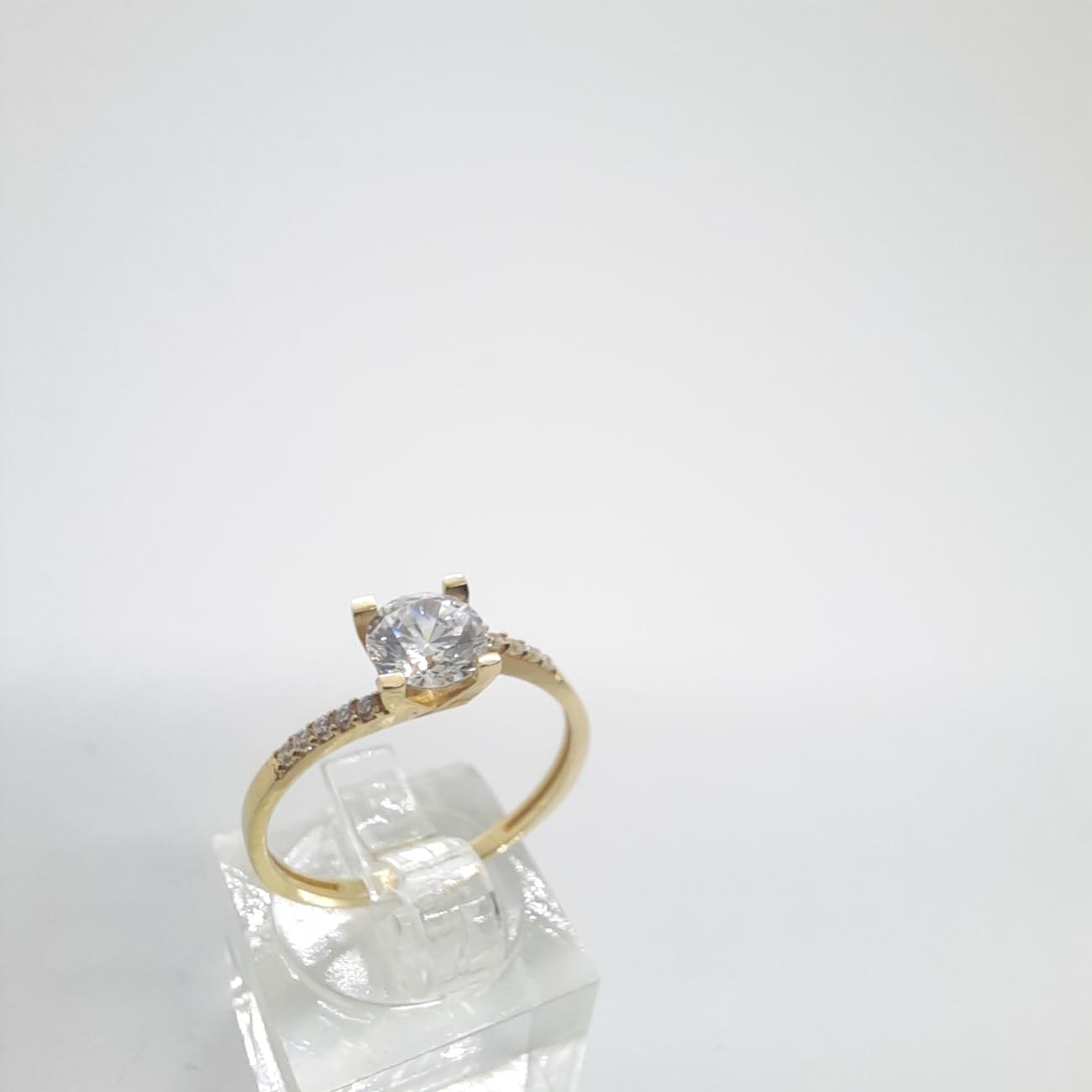 Υπόσχεση αιώνιας αγάπης με δαχτυλίδι αρραβώνων από χρυσό Κ9 με λευκά ζιργκόν στις ασύμμετρες γάμπες του και κεντρικό λευκό ζιργκόν, πολύ θηλυκό και ρομαντικό design.