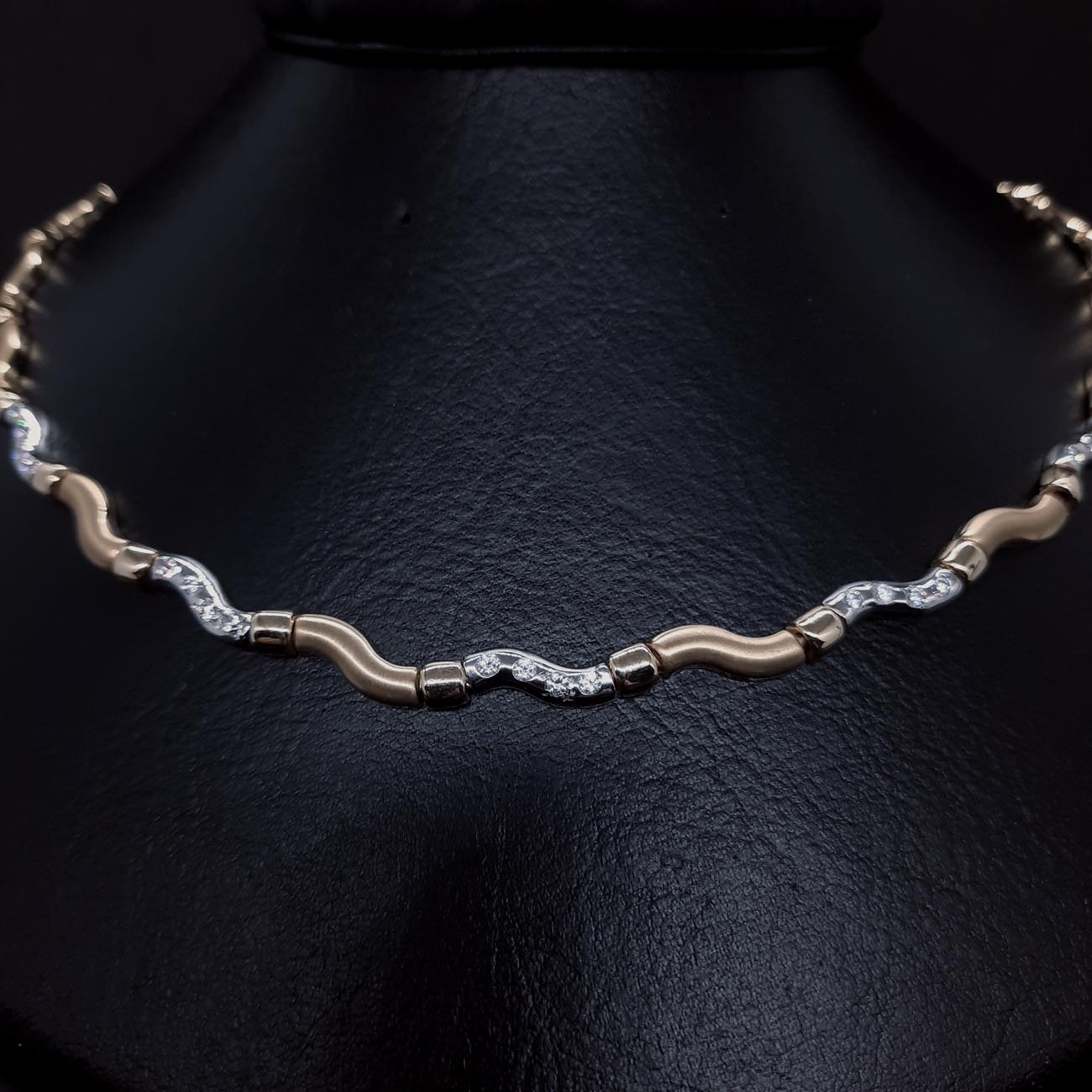 Για την μοντέρνα νύφη που όμως δεν έχει χάσει τον ρομαντισμό της ένα υπέροχο νυφικό σετ , εξαιρετικές λεπτομέρειες ματ χρυσού σε συνδυασμό με λευκόχρυσο και διακριτικό σχεδιασμό με ζιργκόν, ένα πολύτιμο σετ κοσμημάτων που θα κάνουν ομορφότερη την πιο λαμπερή μέρα της ζωής της αλλά και θα φορεθεί μεμονωμένα σε κάθε περίσταση στο μέλλον.