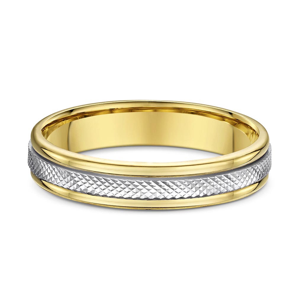 Υπέροχη βέρα από χρυσό με λευκόχρυσο κύκλο με "διαμαντέ" επεξεργασία , διαχρονικό στυλ και αξία.