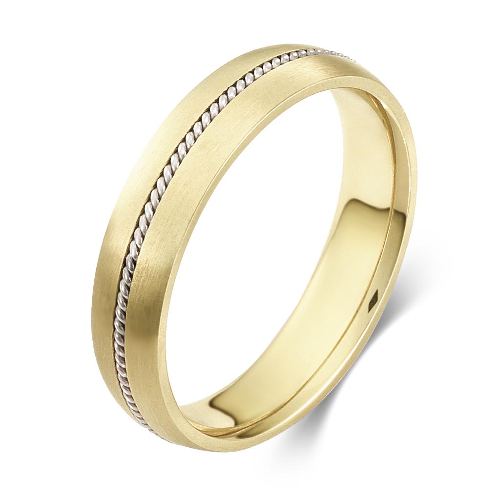 Χρυσή βέρα, σε λιτό σχέδιο, με διακριτική πλεξίδα από λευκόχρυσο, διαχρονικής ομορφιάς. (κατόπιν παραγγελίας στο επιθυμητό σας μέγεθος)