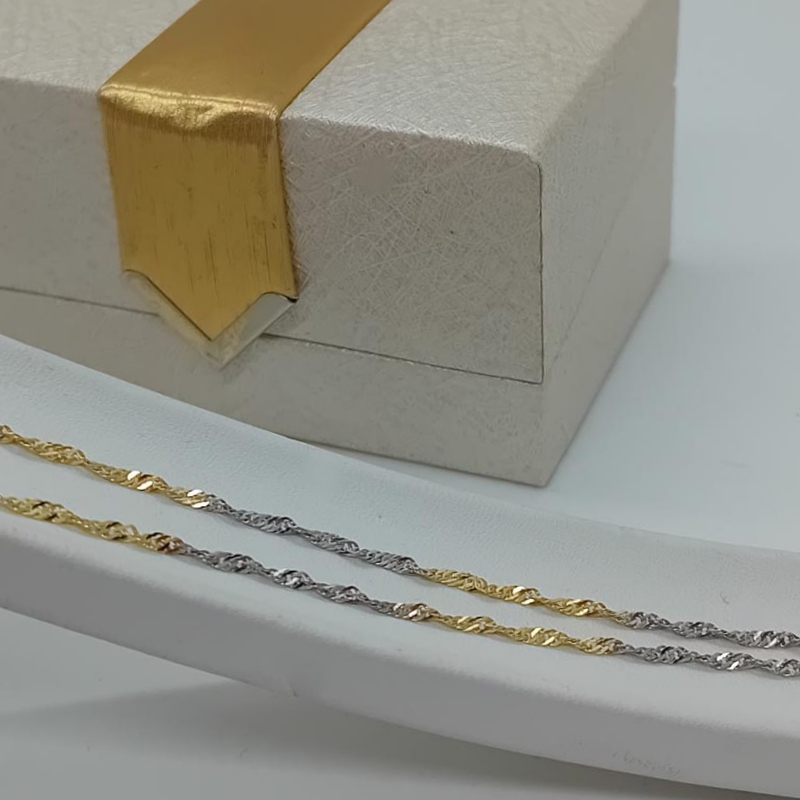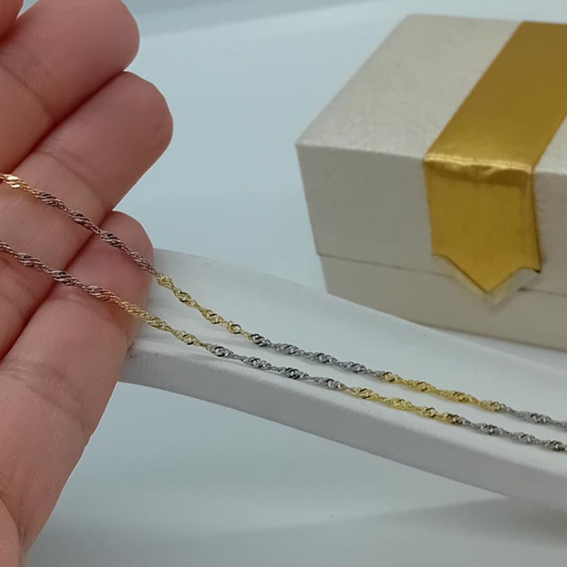 Αυτή η αλυσίδα αποτελεί ένα όμορφο κόσμημα για το ντεκολτέ σας καθώς μπορεί να φορεθεί μεμονωμένα ή να συνοδέψει κάποιο σταυρό ή άλλο πολύτιμο μενταγιόν σας. Έχει πολύ όμορφη στριφτή πλέξη από λευκόχρυσα και χρυσά κρικάκια 14 ΚΑΡΑΤΙΩΝ.