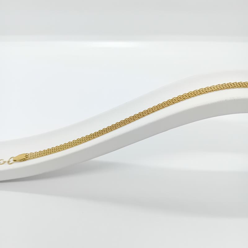 Ατσάλινη γυναικεία αλυσίδα χειρός, υποαλλεργική, σε design ψάθα, σε όμορφη χρυσή απόχρωση.