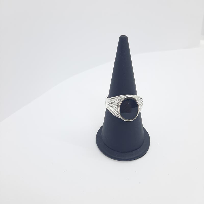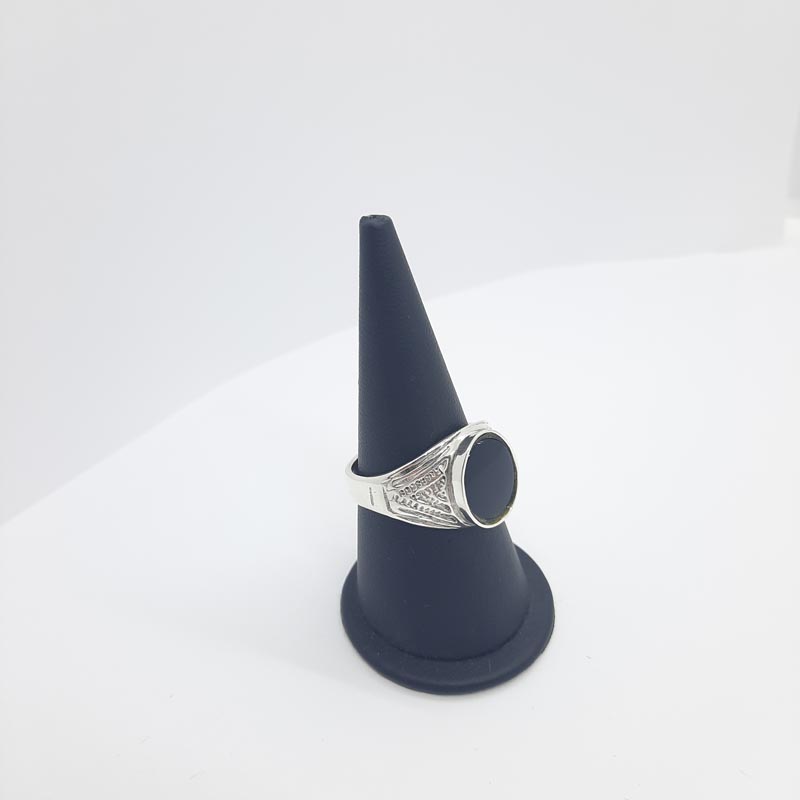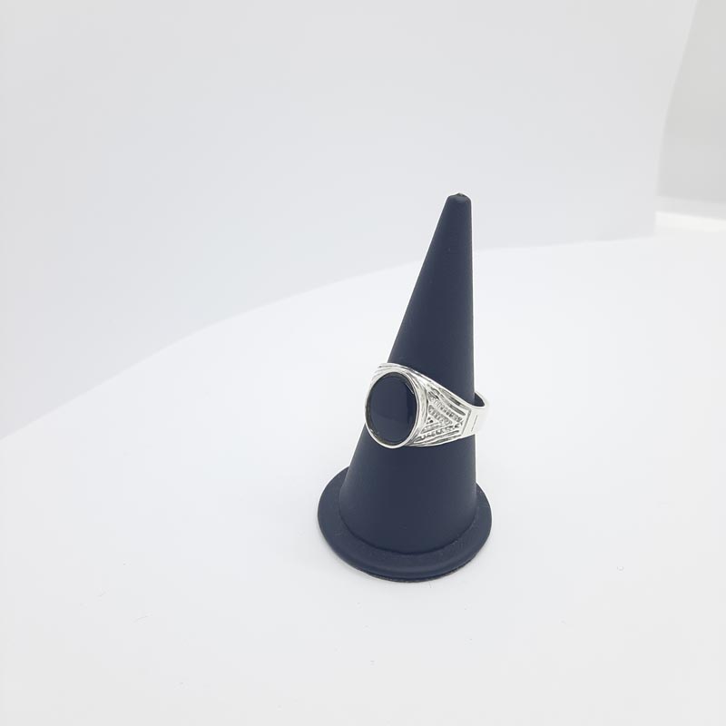 Δυναμικό design σκαλιστό δαχτυλίδι με μαύρο όνυχα από ασήμι 9.25 για τον καλόγουστο άντρα που ξεχωρίζει.