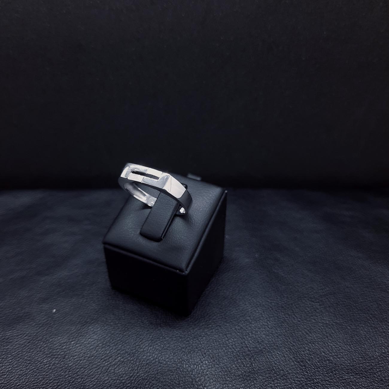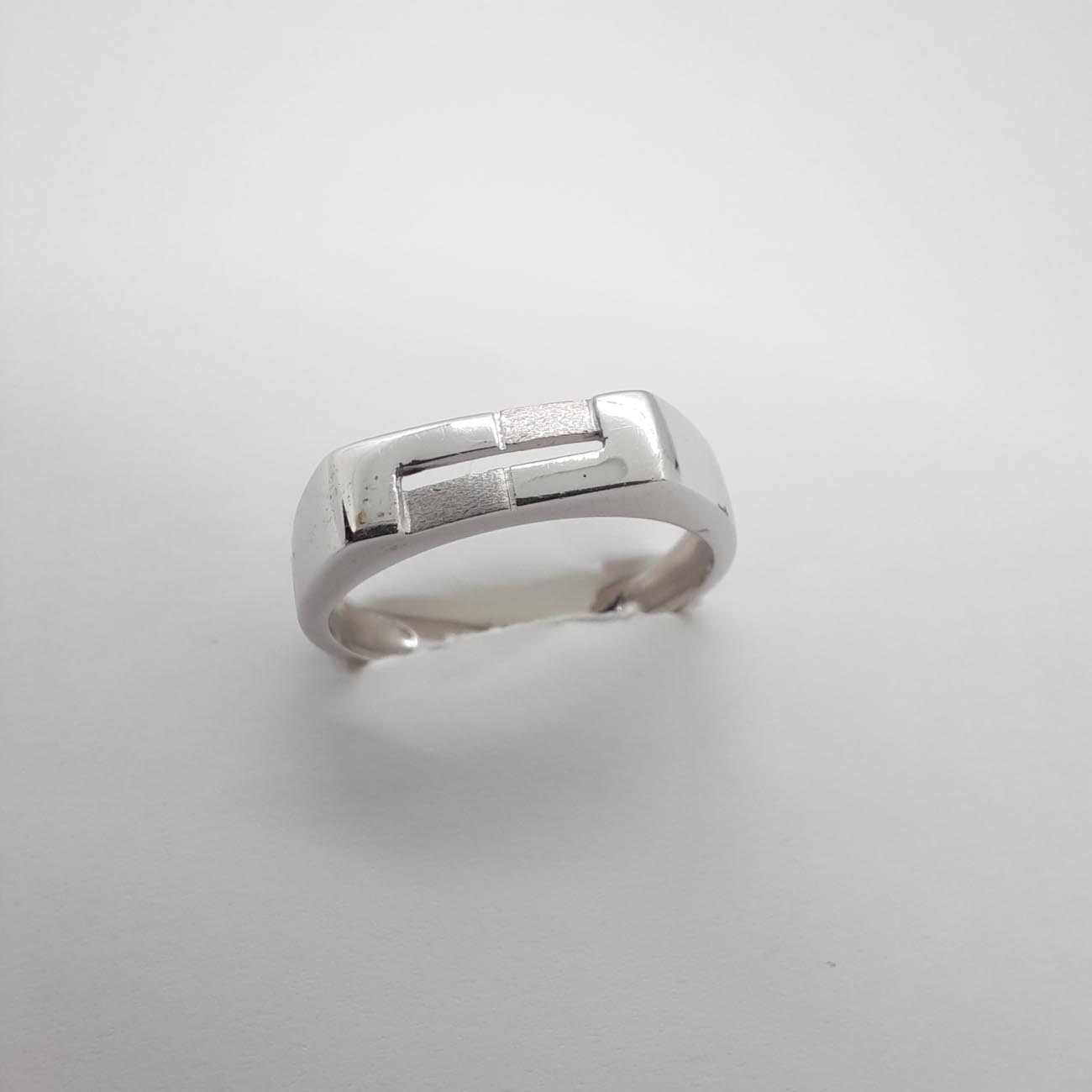 Ένα πολύ νεανικό ανδρικό δαχτυλίδι από λευκόχρυσο 14 ΚΑΡΑΤΙΩΝ, γεωμετρικού ύφους, με επιφάνεια λαμπερή λουστρέ με 2 μικρά ζαγρέ ορθογώνια σχέδια και οριζόντια σχισμή στο κέντρο, ιδανικό δώρο παντοτινής αξίας , ιδιαίτερα για αρραβώνα για δώρο γαμπρού ή κουμπάρου!