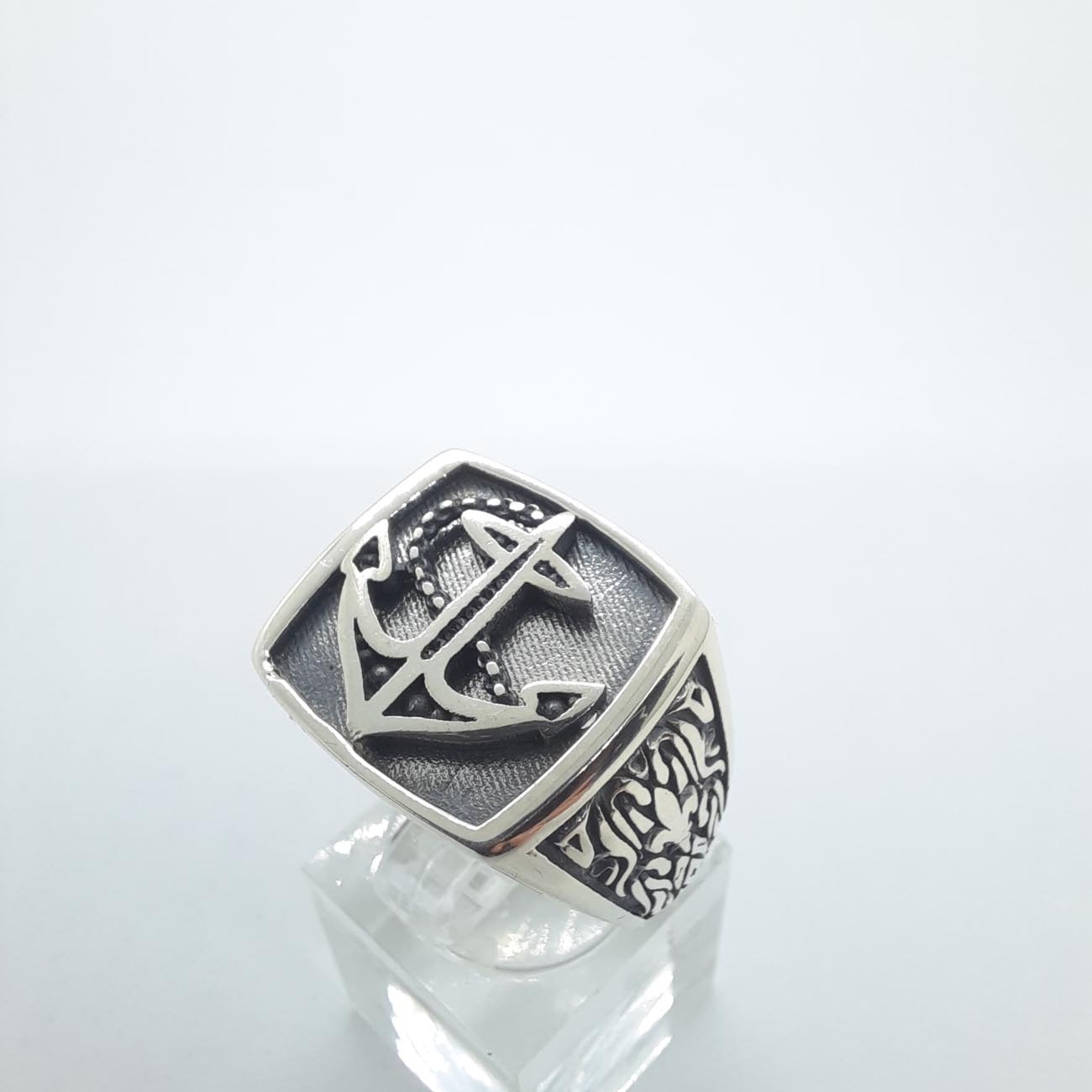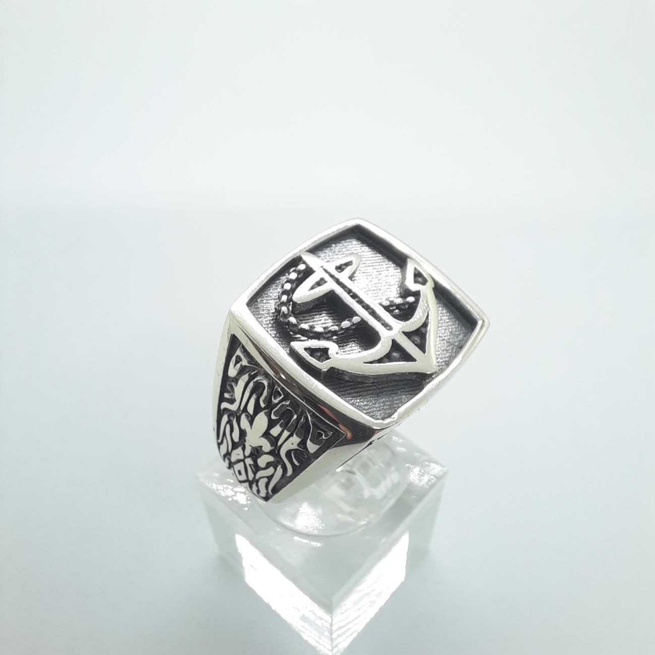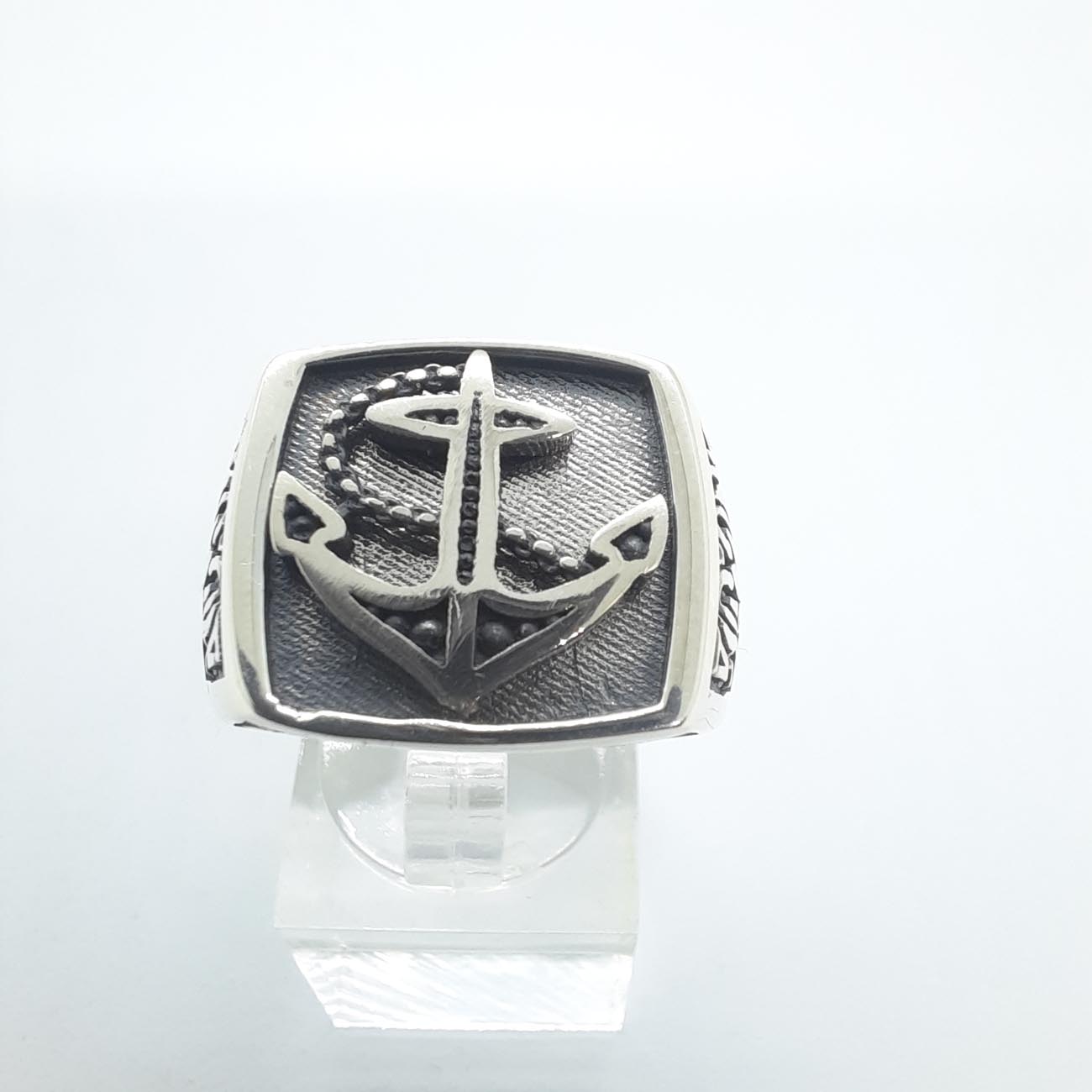 Για τον λάτρη της θάλασσας, ένα υπέροχο τετράγωνο δαχτυλίδι , από ασήμι, με μπροστινή επιφάνεια από αμμοβολή και χαρακτηριστική άγκυρα.