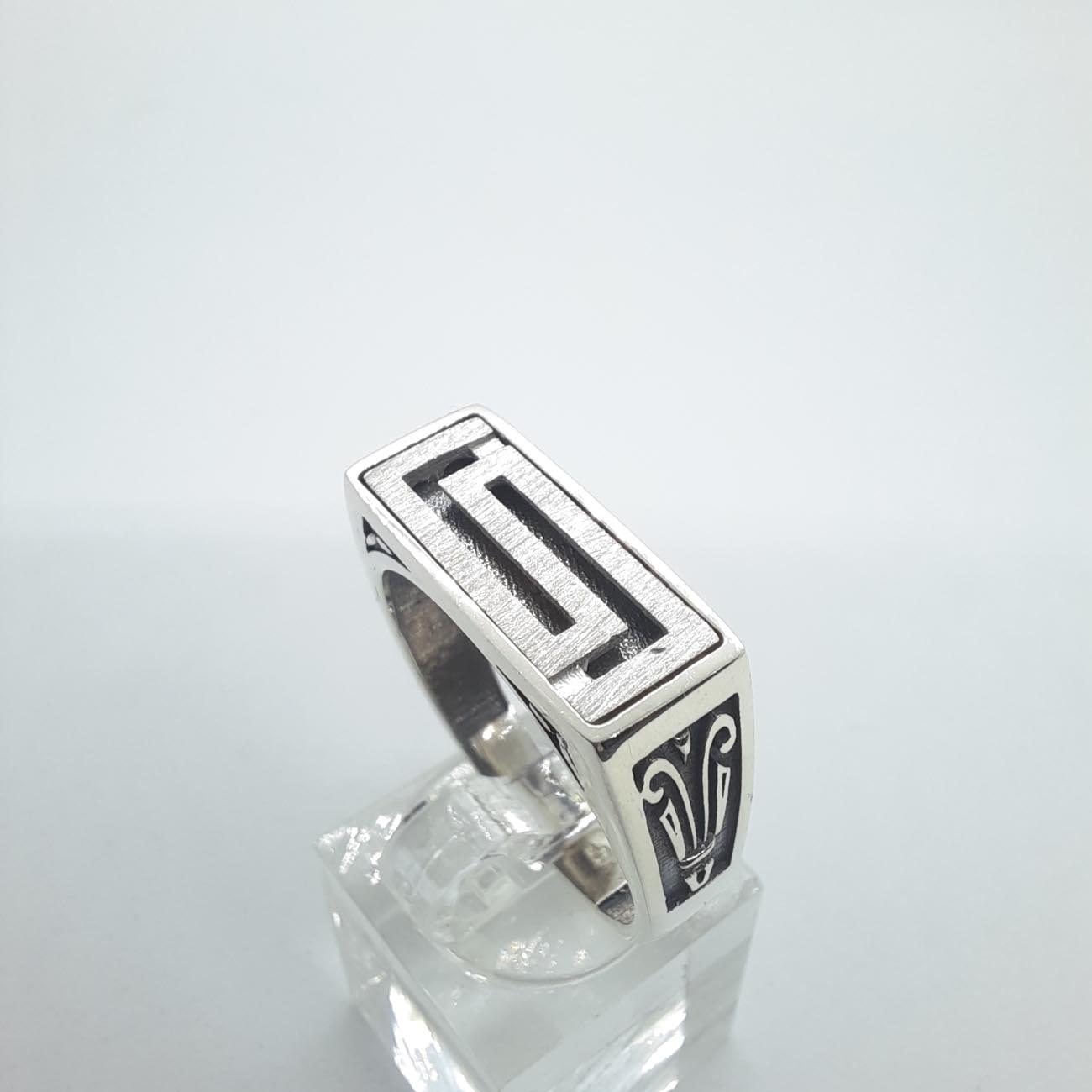 Φανταστικό ασημένιο δαχτυλίδι εμπνευσμένο από την αρχαία Ελλάδα με όμορφες λεπτομέρειες.