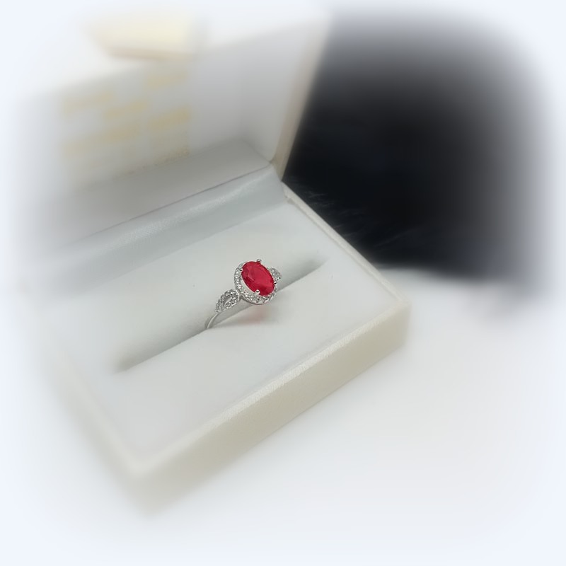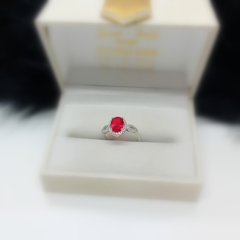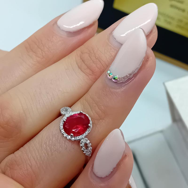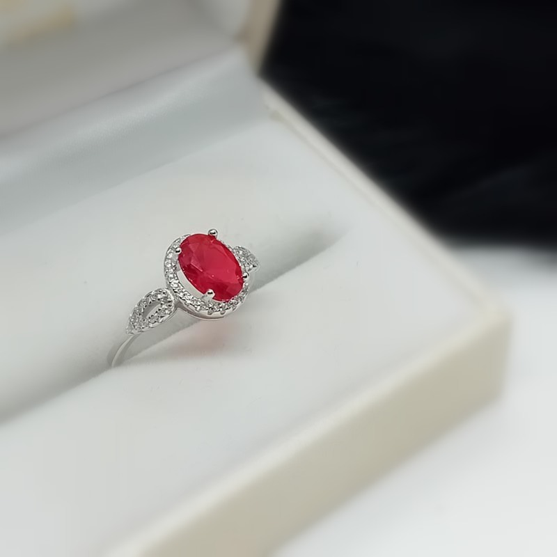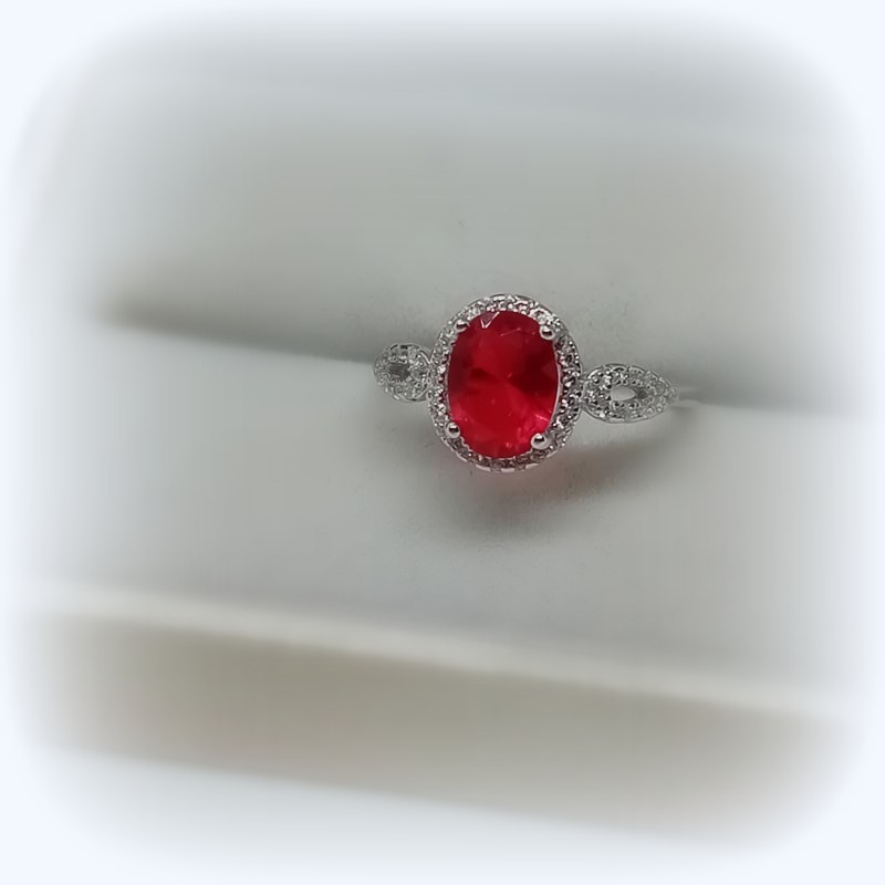Αισθησιακή κόκκινη πέτρα ζιργκόν σε οβάλ design, πλαισιωμένη από μικ΄ρα αστραφτερά ζιργκονάκια λευκά, σε δαχτυλίδι από ΑΣΗΜΙ 925.