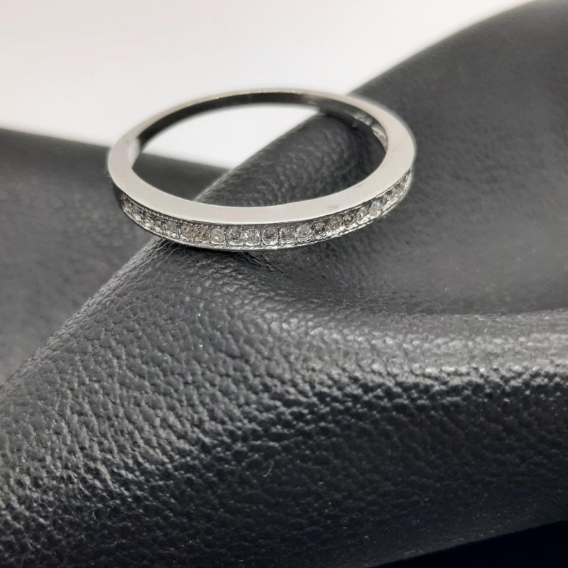 Δαχτυλίδι ασήμι 9.25 design σειρέ με αφθονία λευκών ζιργκόν στην μπροστινή όψη και λουστρέ στην πίσω όψη.
