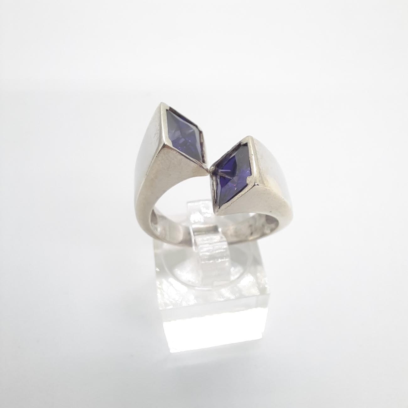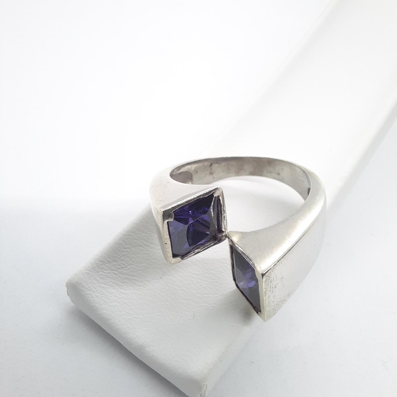 Ένα φανταστικό δαχτυλίδι από ασήμι, πολύ ιδιαίτερο καλλιτεχνικό design, με μωβ τετράγωνο ζιργκόν, για την σοφιστικέ γυναίκα που επιθυμεί να πρωτοτυπεί και να ξεχωρίζει μέσα στο πλήθος.