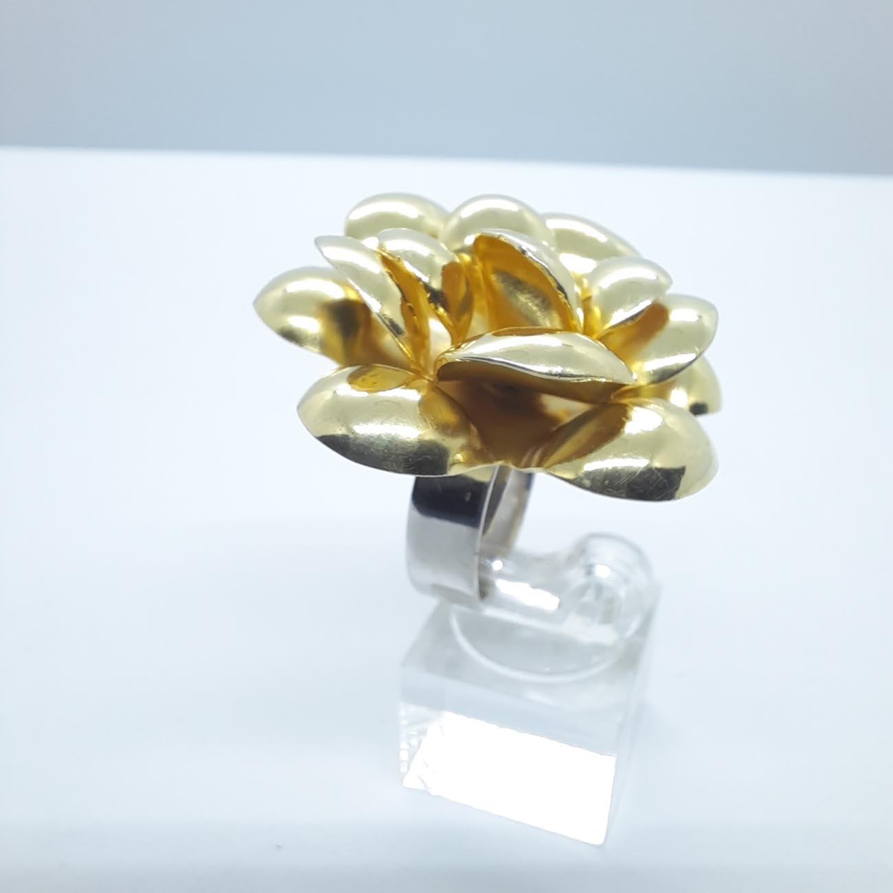 Κλέψτε την παράσταση με ένα θαυμάσιο πελώριο επιχρυσωμένο ασημένιο τριαντάφυλλο, με ασημένιο κρίκο, κόσμημα ιδανικό για τολμηρές εμφανίσεις.