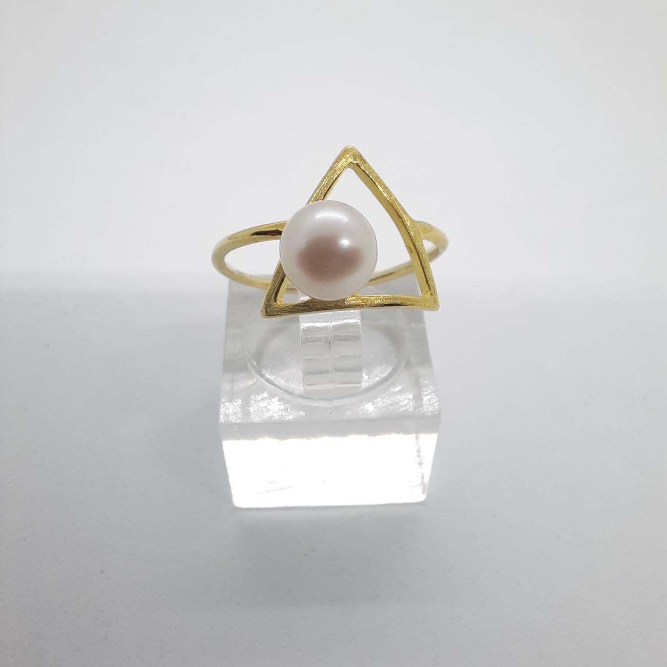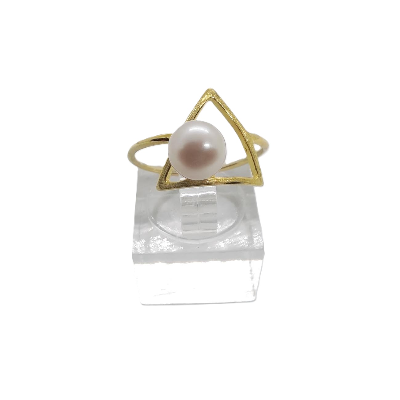 Επιχρυσωμένο τριγωνικό δαχτυλίδι με πέρλα