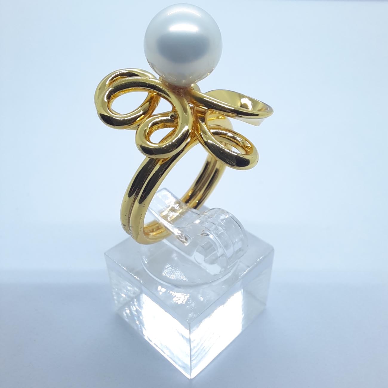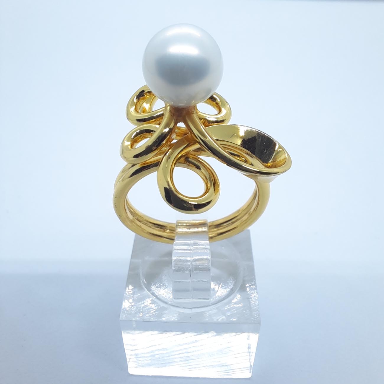 Υπέροχο δαχτυλίδι από επιχρυσωμένο ασήμι με ιδιαίτερο design και πελώρια πέρλα, ένα κόσμημα για την γυναίκα που τολμά να ξεχωρίζει.
