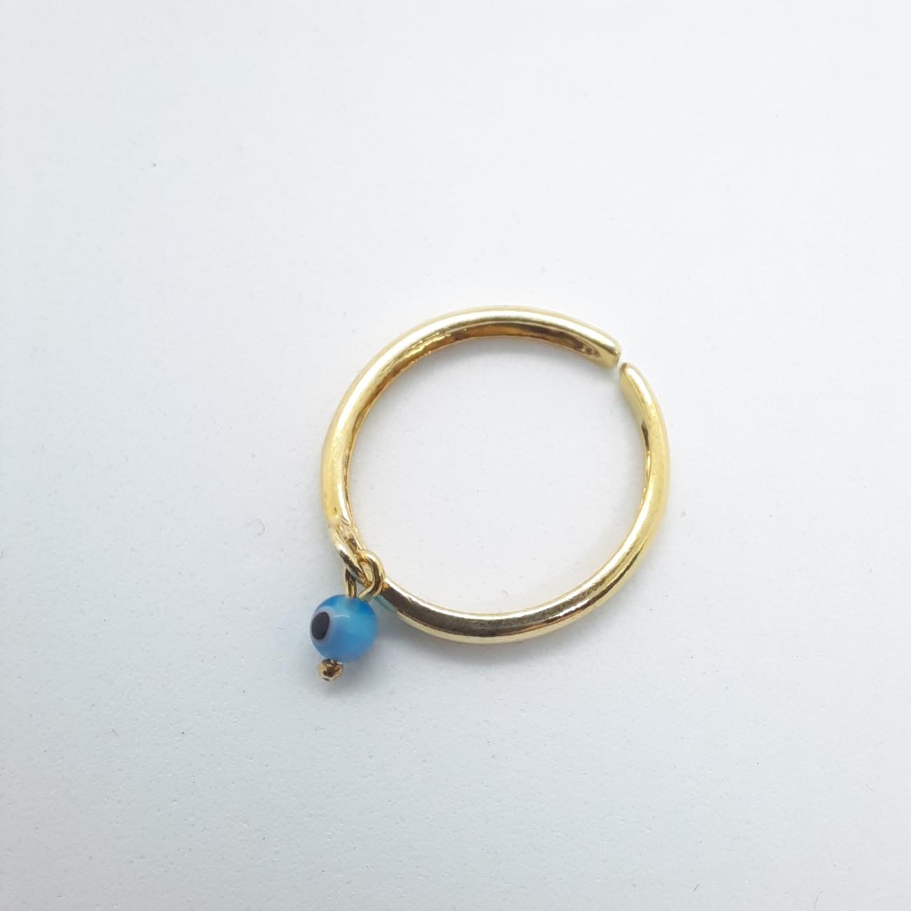 Λιτό βεράκι από επιχρυσωμένο ασήμι με διακριτικό κρεμαστό ματάκι για ιδιαίτερο στυλ και προστασία από βασκανία.