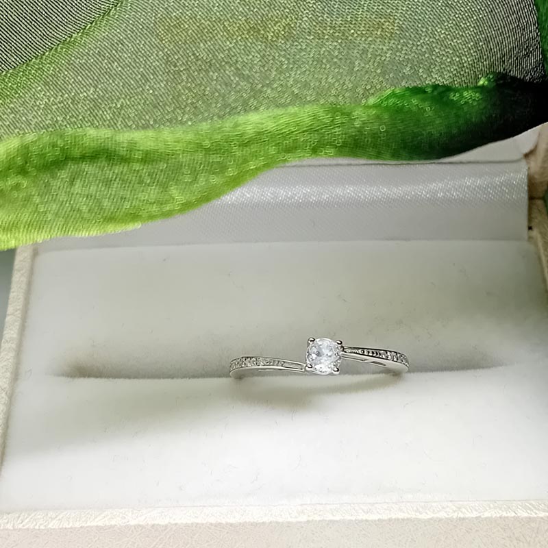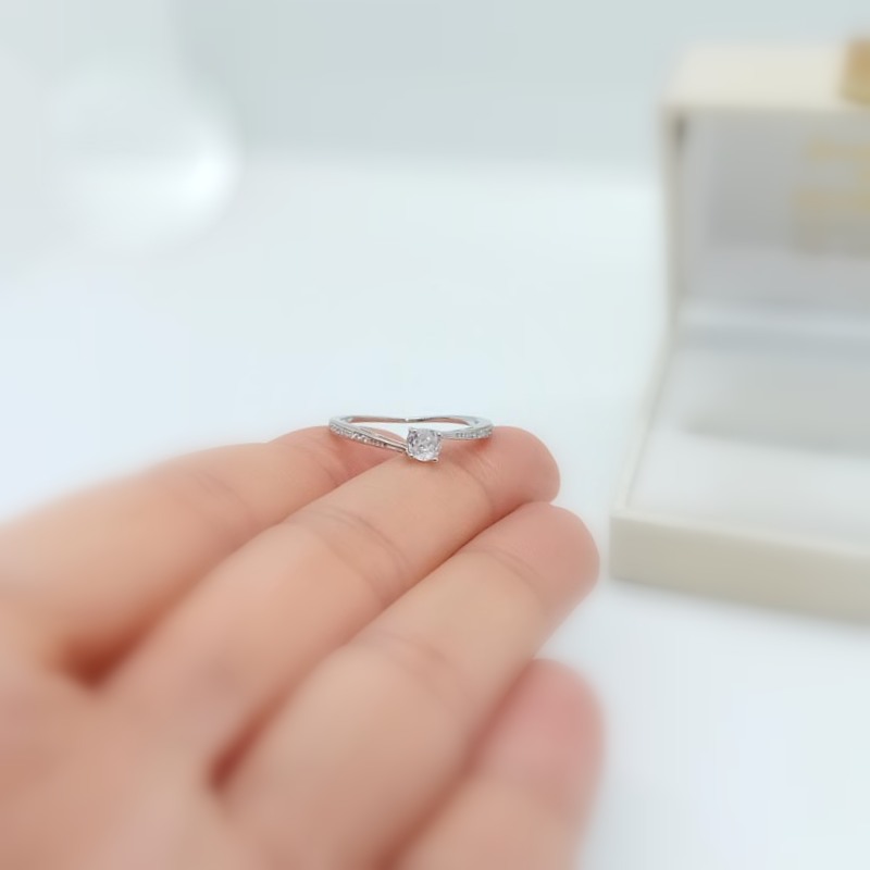 ΑΣΗΜΕΝΙΟ ΔΑΧΤΥΛΙΔΙ ασήμι 925, μονόπετρο, με κεντρικό λευκό ζιργκόν και ανισόπεδη γάμπαδιακοσμημένη με διακριτικά λευκά ζιργκονάκια.