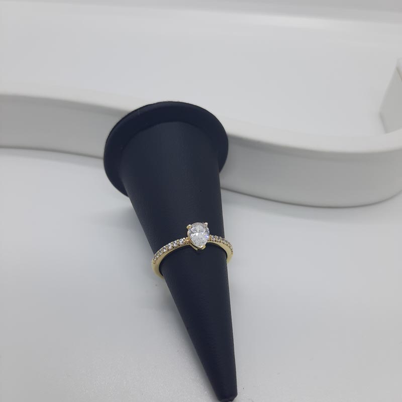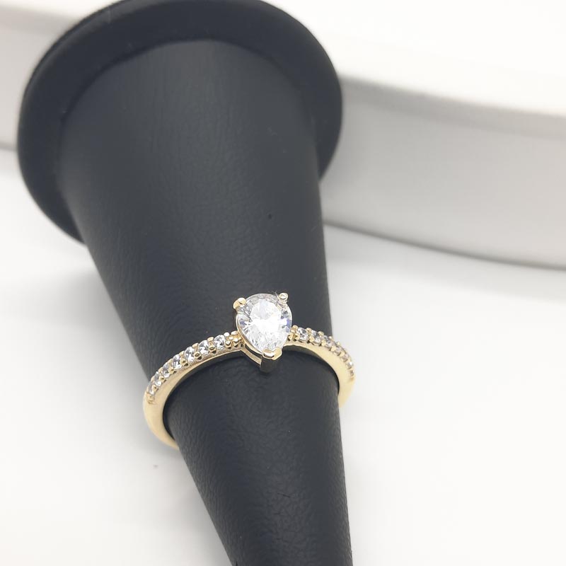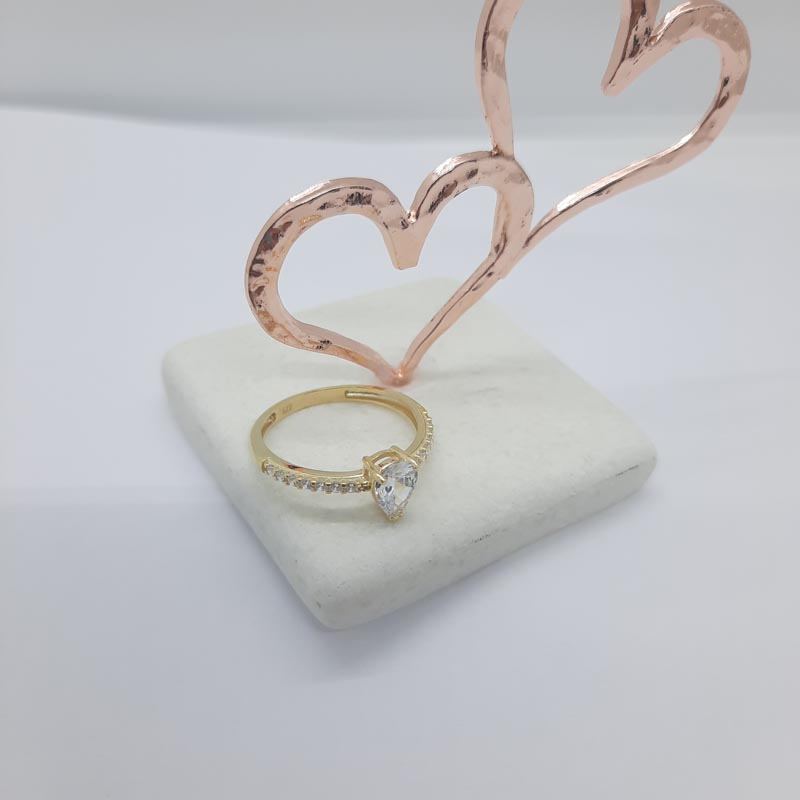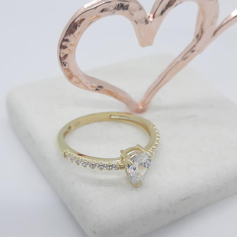Ένα πραγματικά προγκιπικό δαχτυλίδι για την ωραιότερη πρόταση γάμου ! Με εντυπωσιακό λευκό ζιργκόν στο κέντρο σε ιδιαίτερο design και αφθονία μικρότερων λευκών ζιργκόν στις λουστρέ γάμπες του εκατέρωθεν, από χρυσό 9 καρατίων.