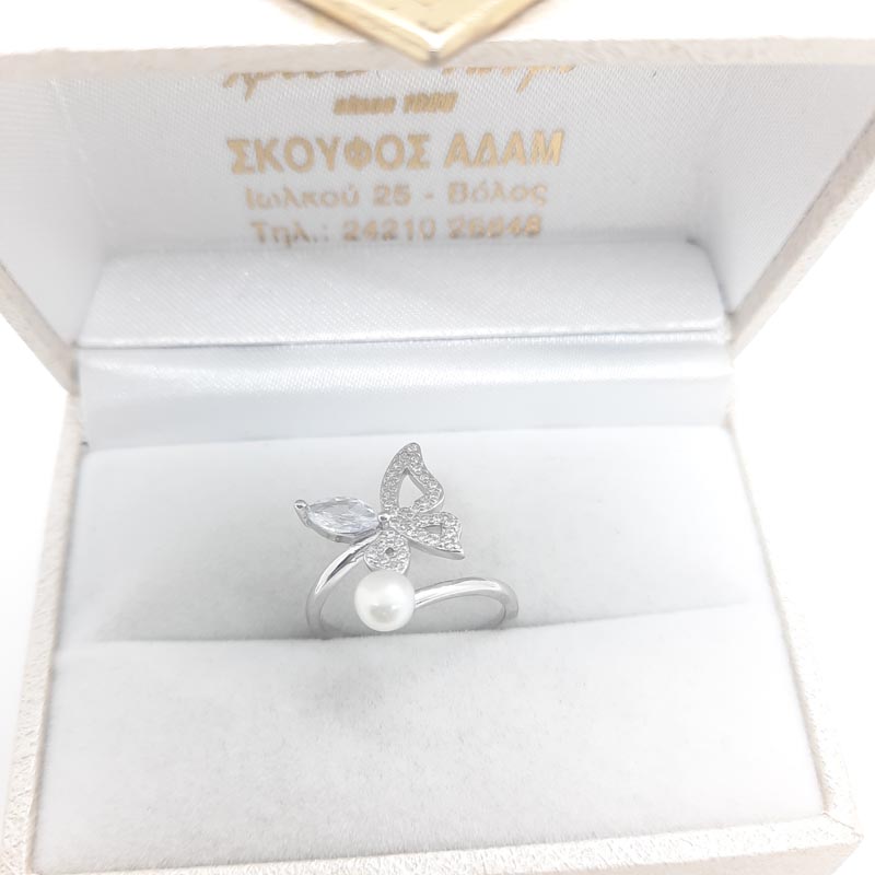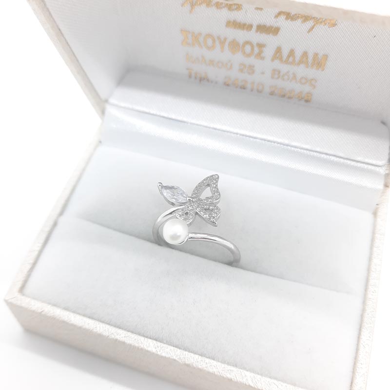 Δαχτυλίδι ασήμι πεταλούδα πέρλα