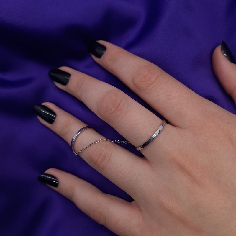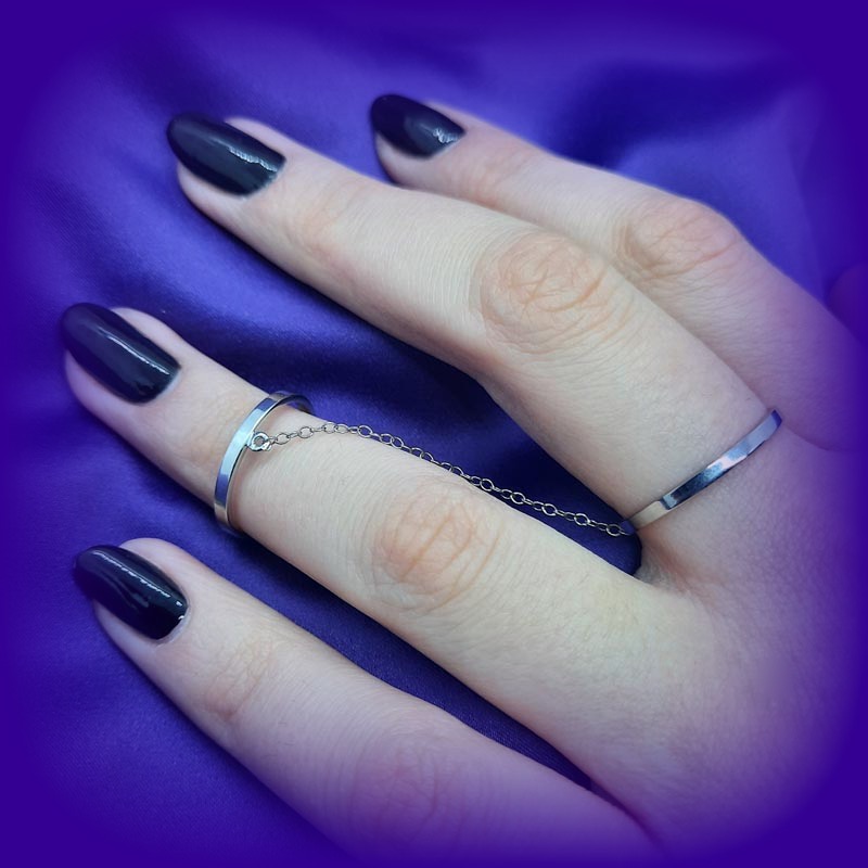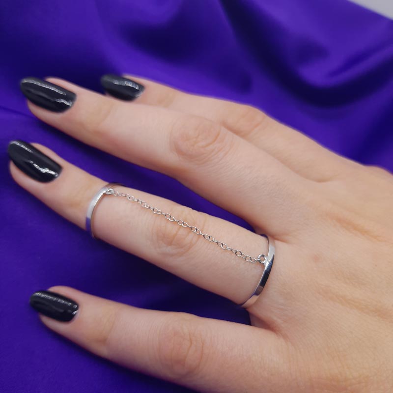 Σετ με δύο δαχτυλίδια από ασήμι 9.25 που συνδέονται μεταξύ τους με αλυσίδα , ένα τολμηρό κόσμημα με ύφος oriental.