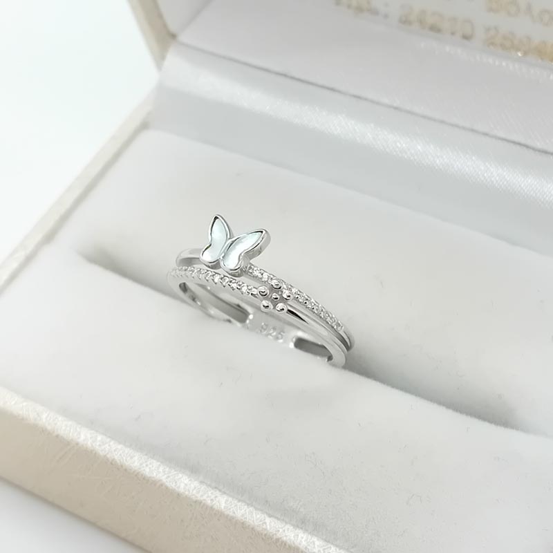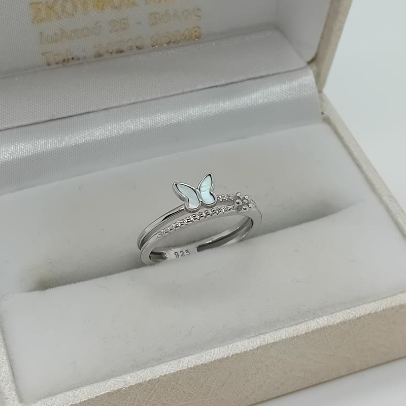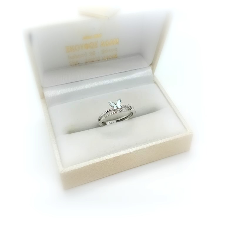 Ρομαντική μικρή πεταλούδα από φίλντισι επάνω σε δαχτυλίδι από ΑΣΗΜΙ 925, με δύο γάμπες, μικρά λευκά ζιργκόν και λουλουδάκι, πολύ κομψό για όλη την ημέρα !