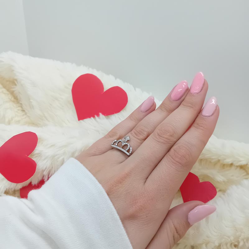 Ιδανικό κόσμημα για την πριγκίπισσα της καρδιάς σας, εκπληκτικής ομορφιάς, από ασήμι 925 , με design ενυτυπωσιακής κορώνας, στολισμένης με μικρά διακριτικά λευκά ζιργκόν και ματ ζαγρέ λεπτομέρειες,