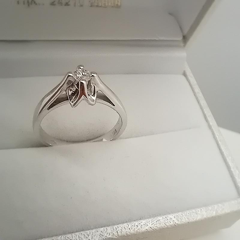 Σας προτείνουμε αυτό το υπέροχο μονόπετρο , ιδανικό για πρόταση γάμου! Ένα μικρό καλαίσθητο άνθος από λευκόχρυσο 18 ΚΑΡΑΤΙΩΝ, με 1 μεγάλο κεντρικό διαμάντι μπριγιάν και πολύ κομψό σχεδιασμό "γάμπας" . ΧΑΡΑΚΤΗΡΙΣΤΙΚΑ: Μέγεθος μπριγιάν 0.14, clarity: VS1, χρώμα: H  Νούμερο 55 ( ΠΡΟΣΟΧΗ! Ο συγκεκριμένος κωδικός ΔΕΝ ΔΙΑΤΙΘΕΤΑΙ στο κατάστημά μας. Μπορείτε να εξυπηρετηθείτε μόνο κατόπιν ραντεβού στο φυσικό μας κατάστημα ώστε να γίνει παραγγελία. )