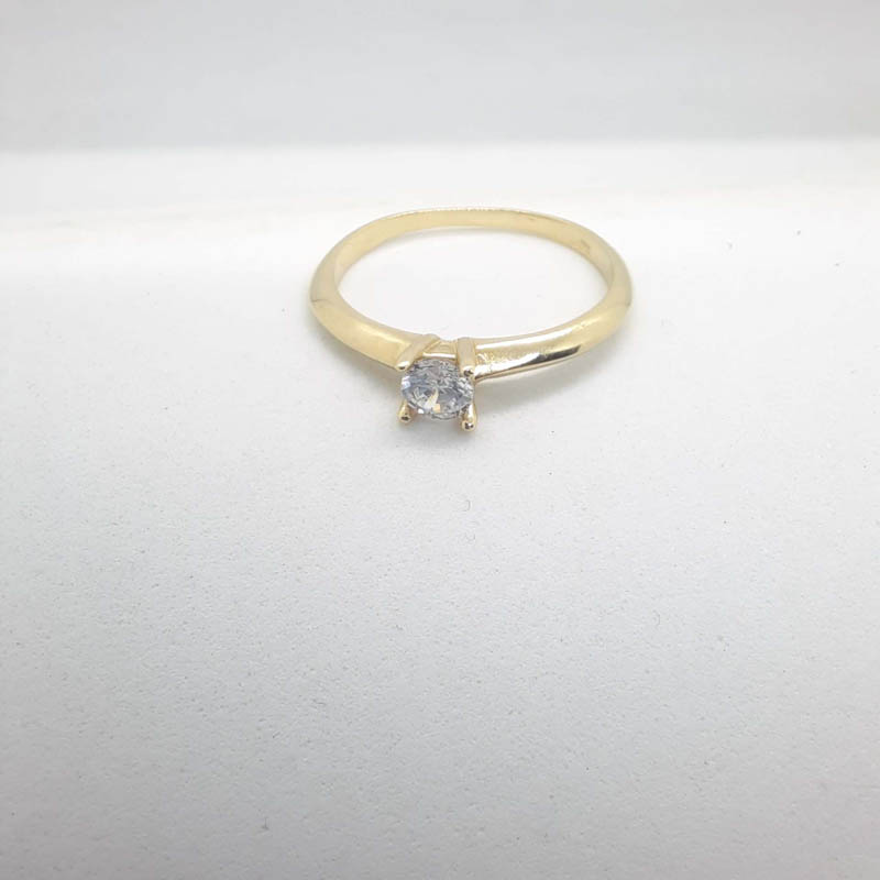 Ήρθε η ώρα για την ωραιότερη πρόταση γάμου! Για ανάλαφρη, νεανική, λιτή πολυτέλεια προτιμήστε αυτό το μονόπετρο δαχτυλίδι από χρυσό 14 καρατίων, με ένα κεντρικό λευκό ζιργκόν και λεπτή γάμπα.