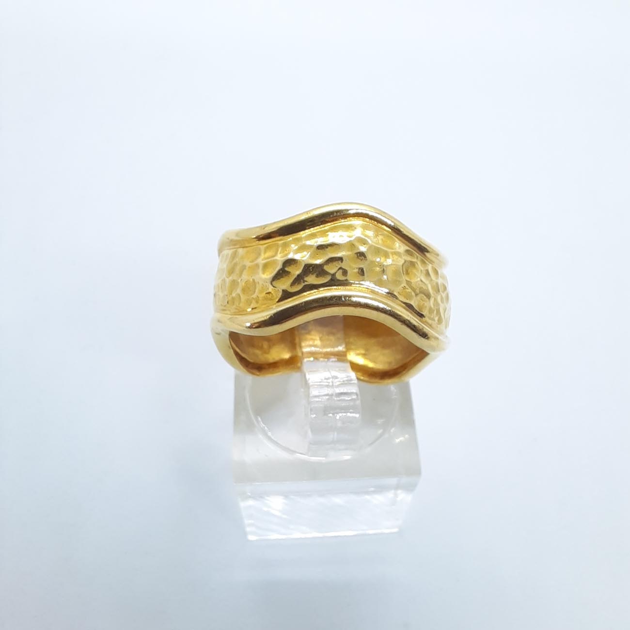 Τόσο μοντέρνο και παράλληλα τόσο διαχρονικό, πολύτιμο κόσμημα, από χρυσό 14 καράτια, φαρδιά επιφάνεια, σφυρήλατη, με design κύμα. Ένα ιδανικό δώρο αγάπης , αποπνέει γοητεία, στυλ και κύρος .
