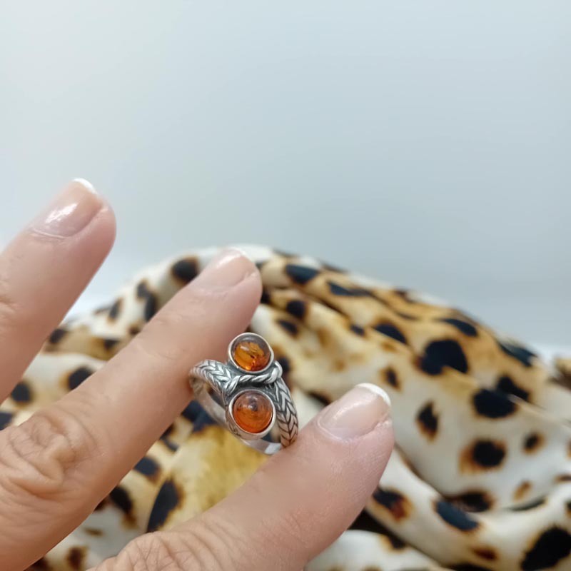 Θεωρείται ότι αυξάνει την διαίσθηση και διώχνει τις αρνητικές σκέψεις ο ημιπολύτιμος λίθος "μάτι της γάτας". Εδώ συναντούμε 2 "μάτια της γάτας" να διακοσμούν ένα δαχτυλίδι παραδοσιακού ύφους, από ασήμι, ματ εμφάνισης, με σκάλισμα ψαροκόκκαλο.