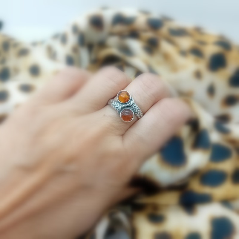 ΔΑΧΤΥΛΙΔΙ ασήμι με πορτοκαλί ημιπολύτιμο λίθο "μάτι της γάτας"