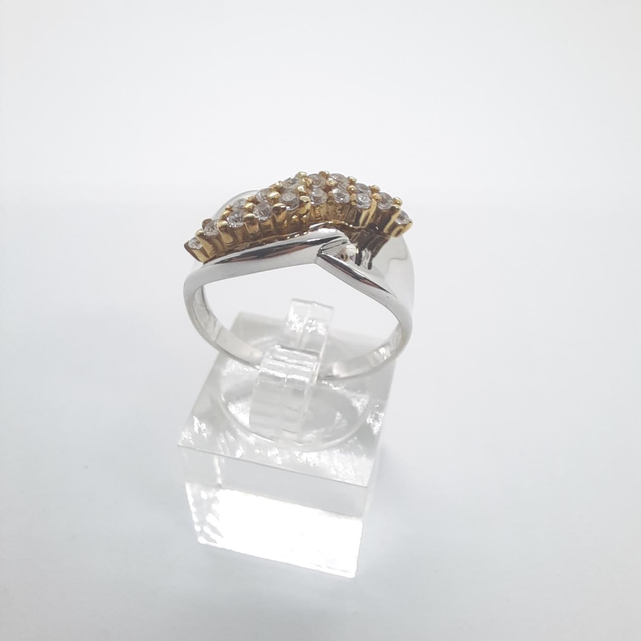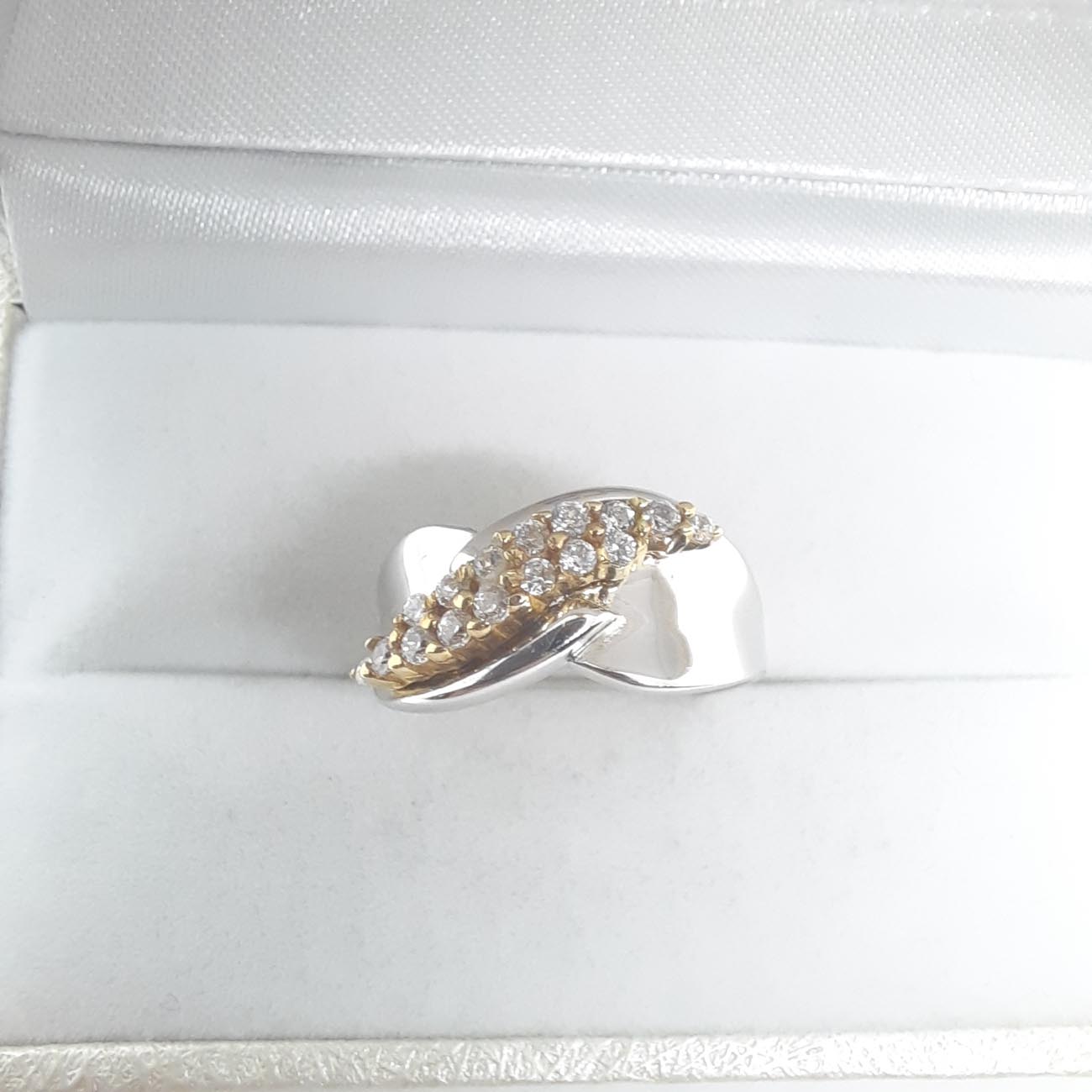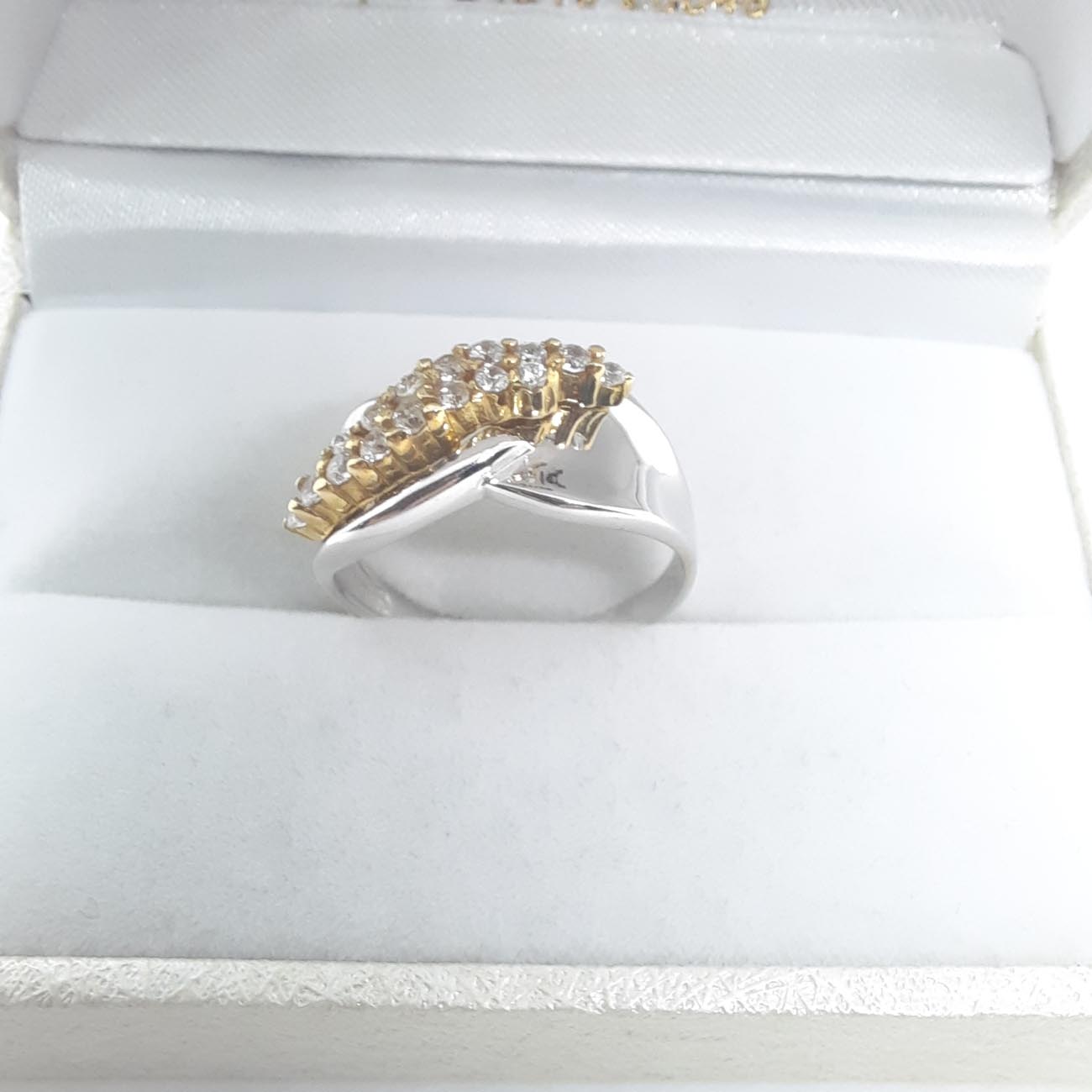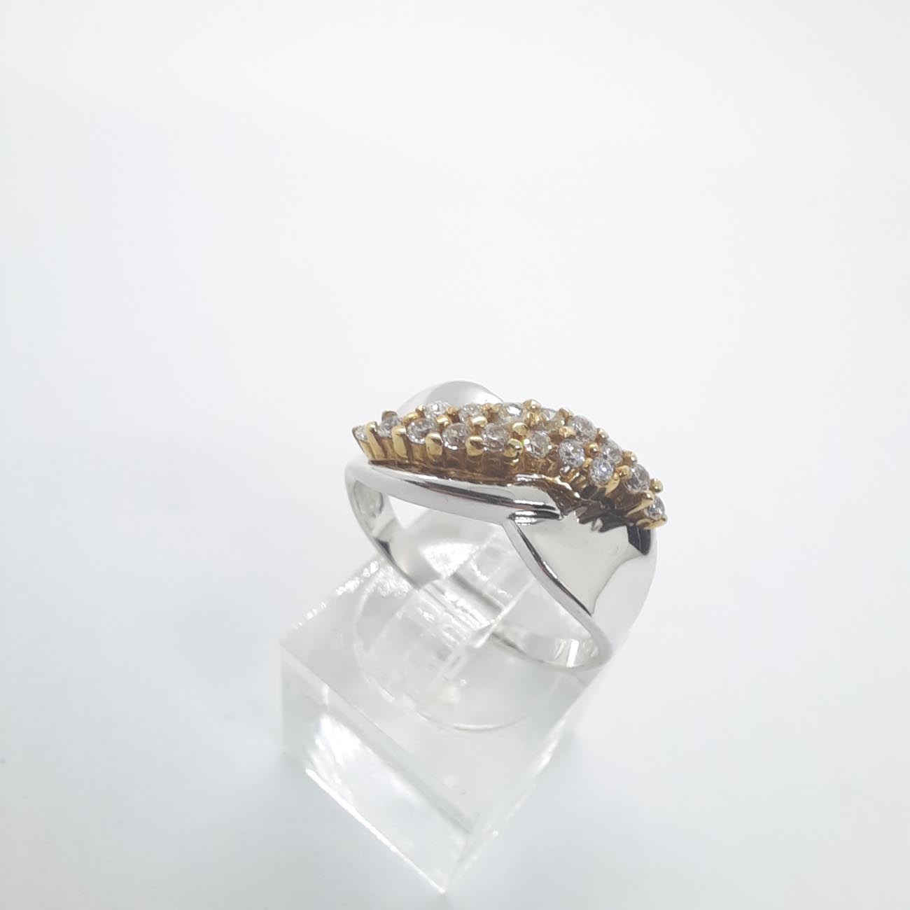 Ένα πραγματικά πριγκιπικό δαχτυλίδι, από λευκόχρυσο 14 καρατίων, φαρδιά εντυπωσιακή επιφάνεια, με μια καμπυλωτή σειρά από λευκά ζιργκόν μέσα σε καστόνι από χρυσό, ιδανικό δώρο αγάπης και παντοτινής αφοσίωσης.