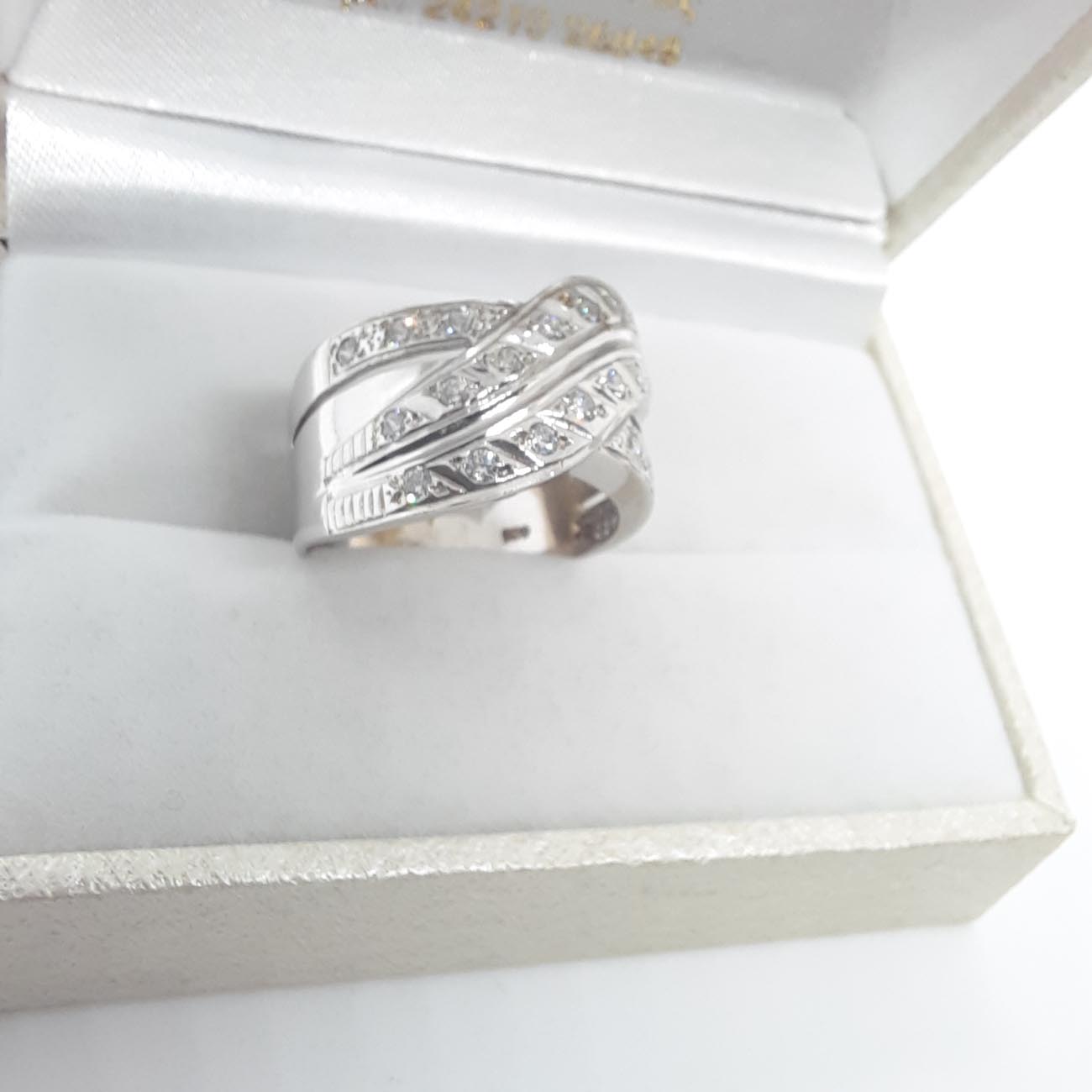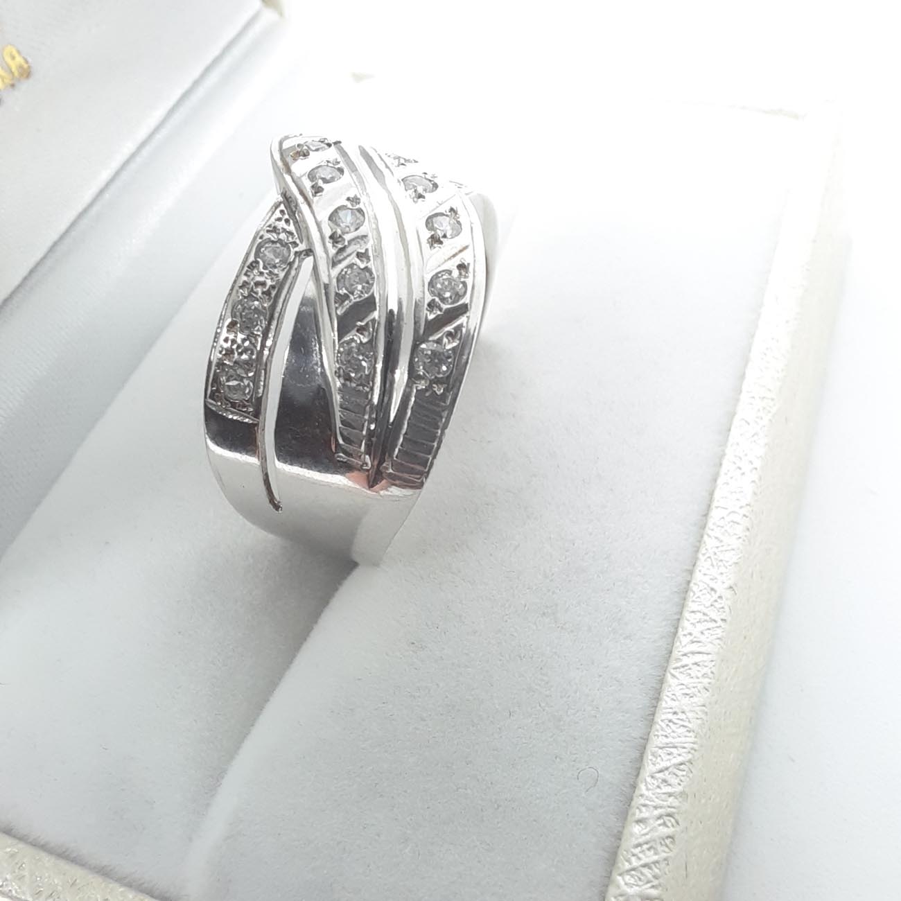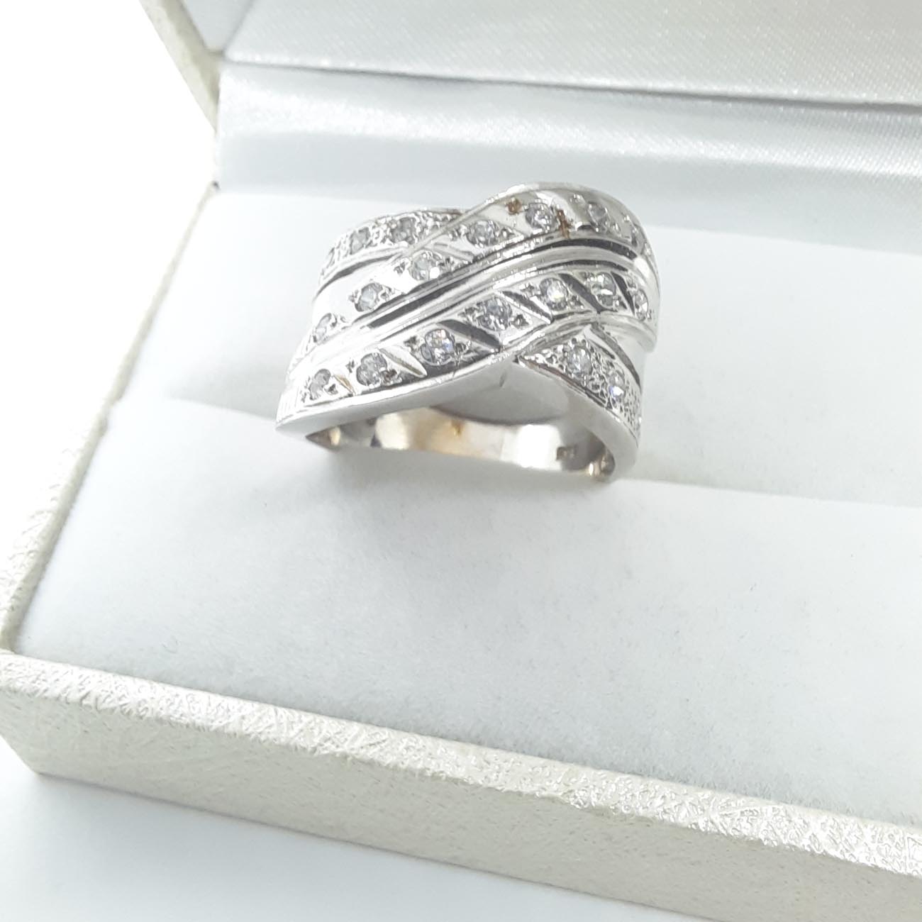 Πολυτελές και εντυπωσιακό δαχτυλίδι από λευκόχρυσο 14 καρατίων, απίστευτης ομορφιάς, με τέλειο σχεδιασμό, με σειρές από λευκά ζιργκόν, ιδανικό δώρο αρραβώνα, γάμου,επετείου.