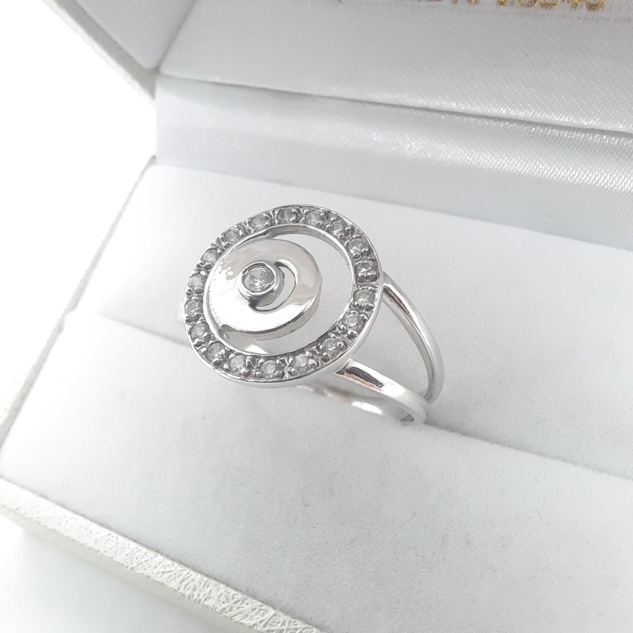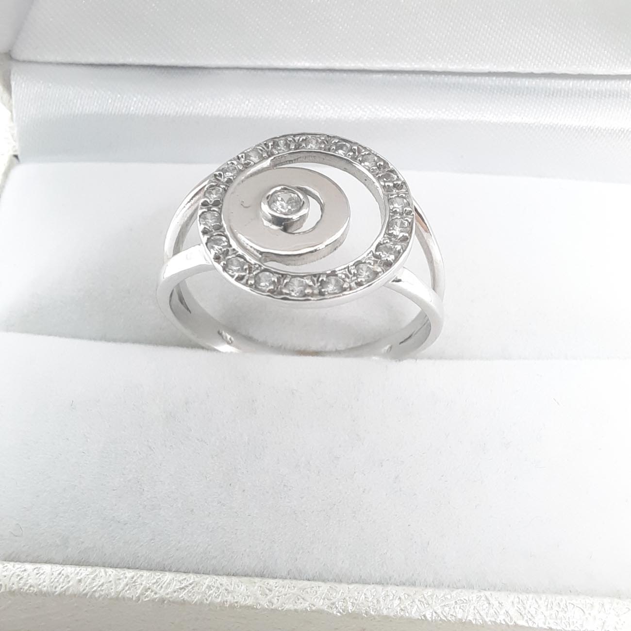 Ένα πολύτιμο κόσμημα επιτέλους στα χέρια σας! Από λευκόχρυσο 14 καράτια, σε κυκλικό design, με γάμπες λεπτές μίνιμαλ αισθητικής, με λευκά ζιργκόν στον εξωτερικό κύκλο και ένα λευκό ζιργκόν στο κέντρο του εσωτερικού κύκλου, ιδανικό δώρο για την γυναίκα που ξέρει να ξεχωρίζει με τις εμφανίσεις της.
