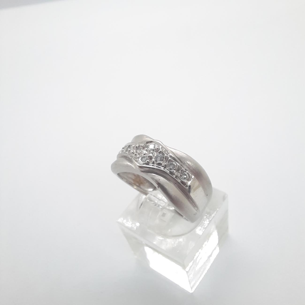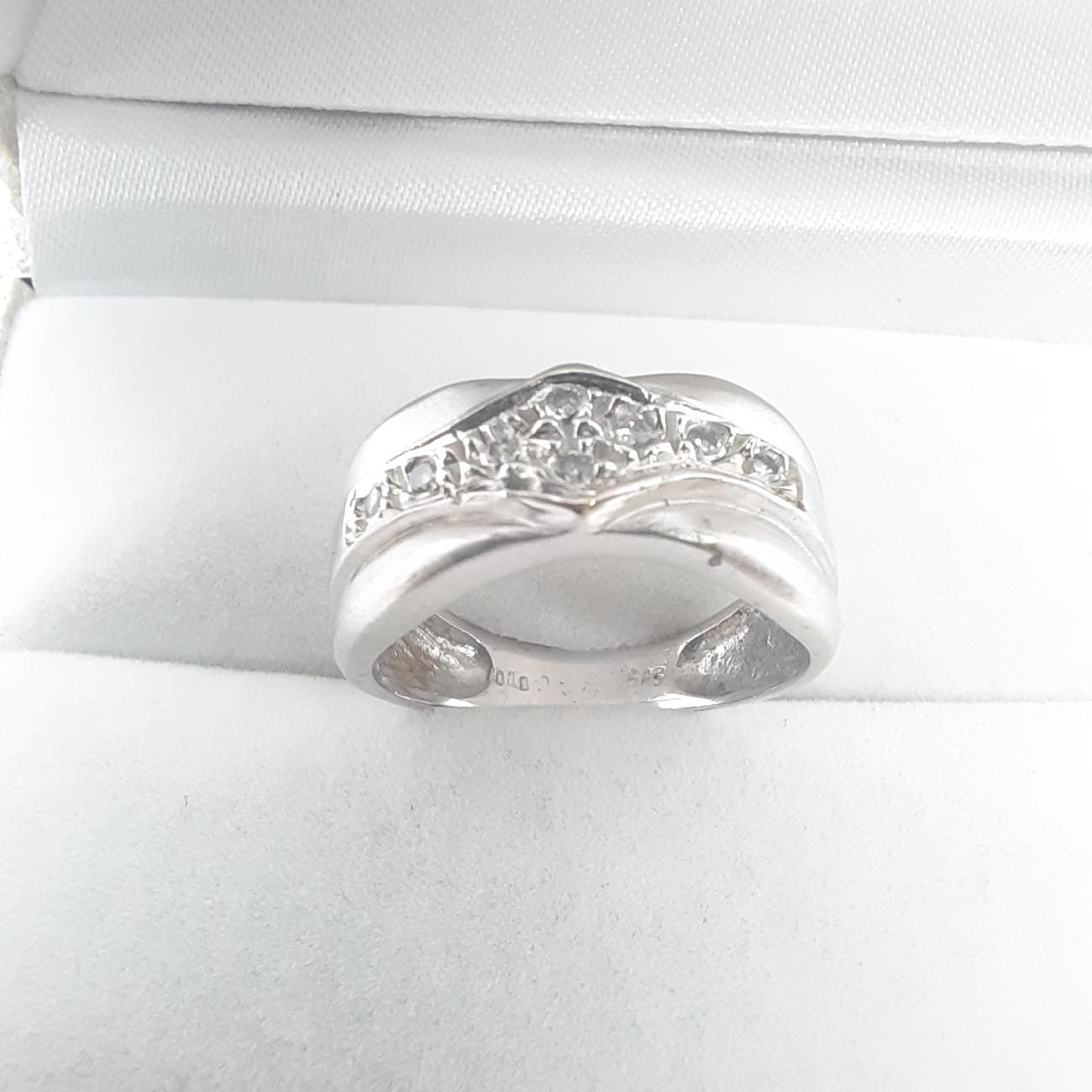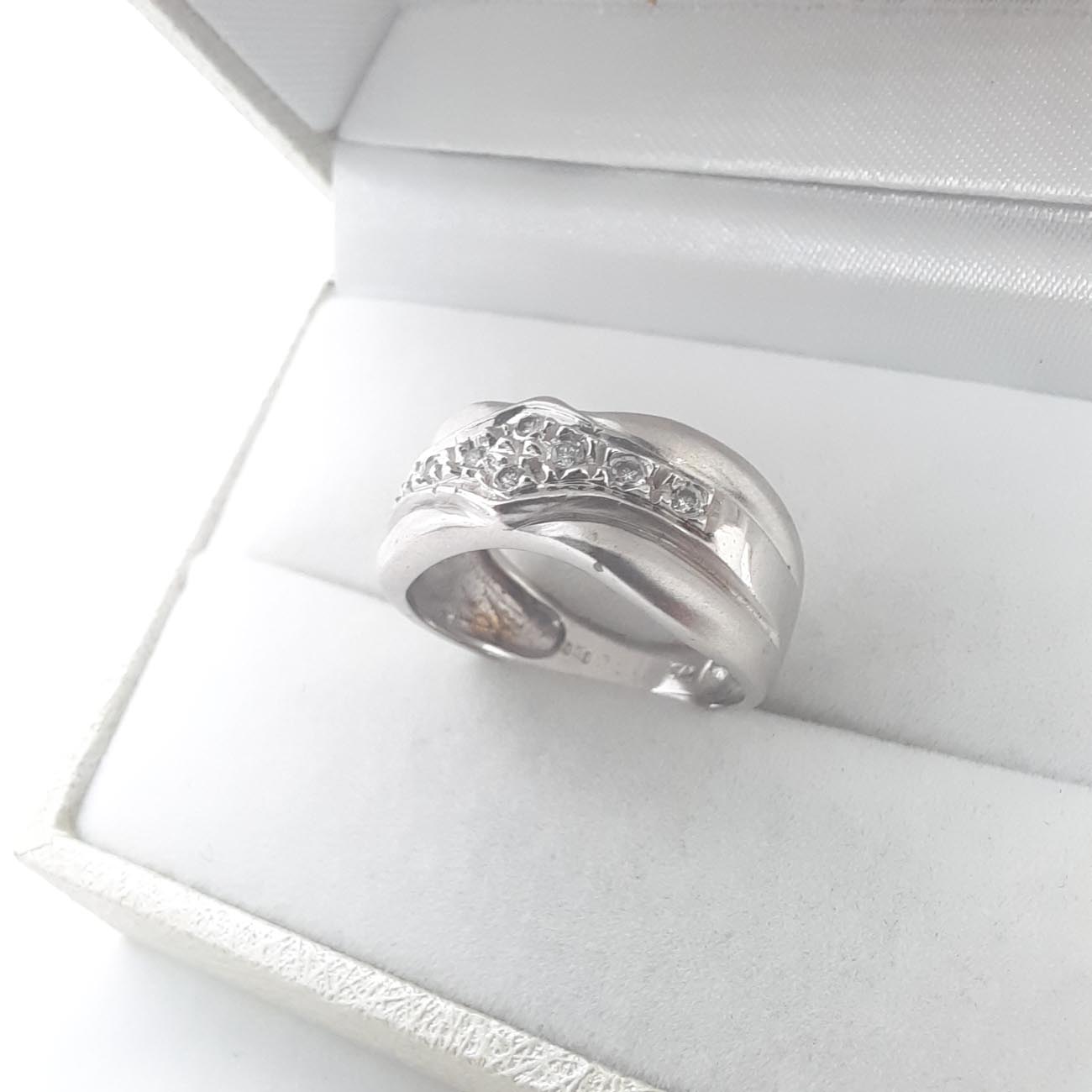 Ένα δαχτυλίδι πραγματικά άξιο για πριγκίπισσα! Από λευκόχρυσο 14 καρατίων, με μια οριζόντια λουστρέ γραμμή να διατρέχει την ματ μπροστινή όψη του και με εκτυφλωτικά λευκά ζιργκόν .Ένα κόσμημα απαράμιλλης ομορφιάς και διαχρονικής ποιότητας.