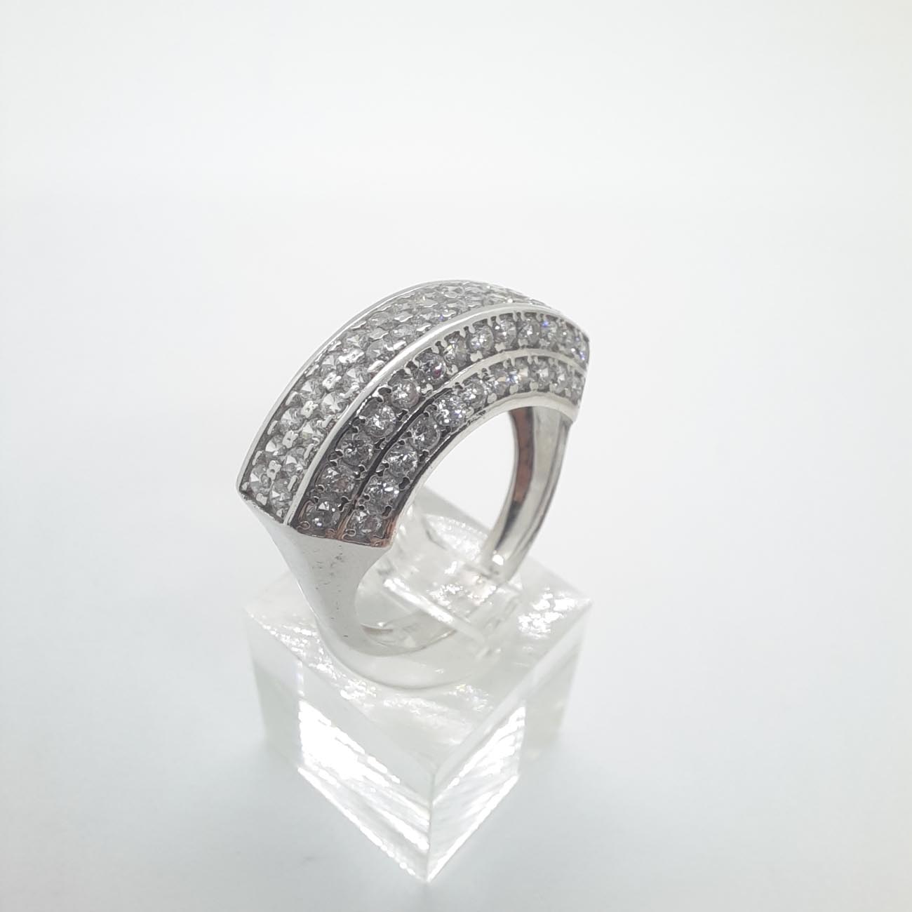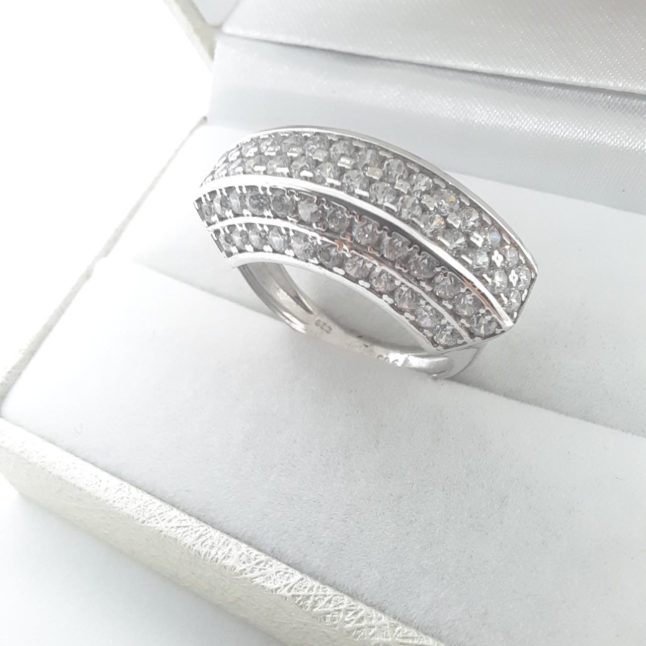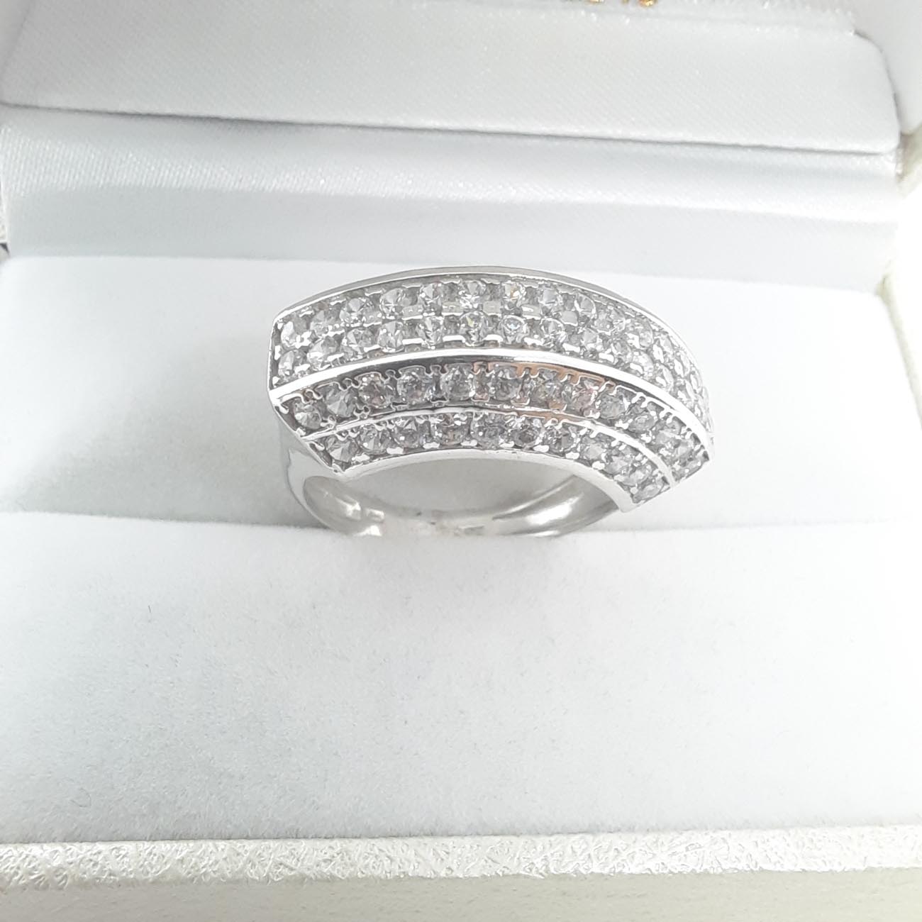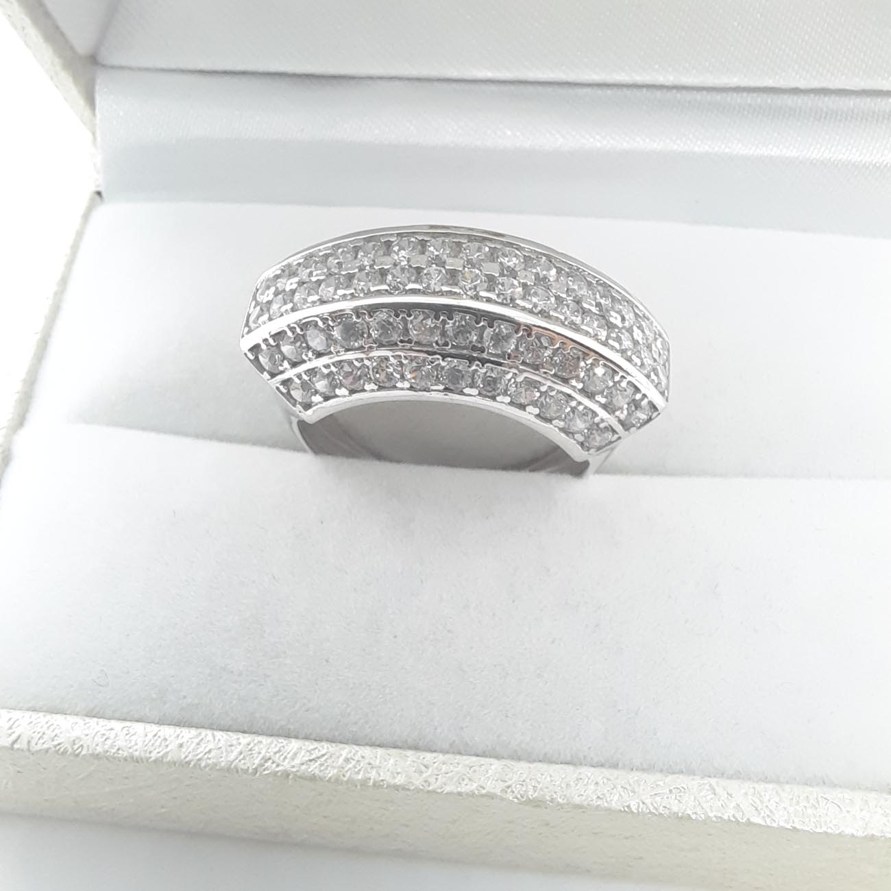 Η γυναίκα που βρίσκεται μέσα στην καρδιά σας αξίζει πραγματικά ένα κόσμημα που θα αγγίξει την δική της καρδιά! Από λευκόχρυσο 14 καράτια, δαχτυλίδι εντυπωσιακό και μεγαλοπρεπές, με 6 σειρές λευκά ζιργκόν, καρφωμένα με το χέρι που δημιουργούν μια αστραφτερή λεία επιφάνεια. Ένα διαχρονικό πολύτιμο αριστούργημα!