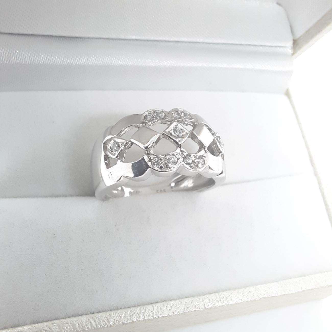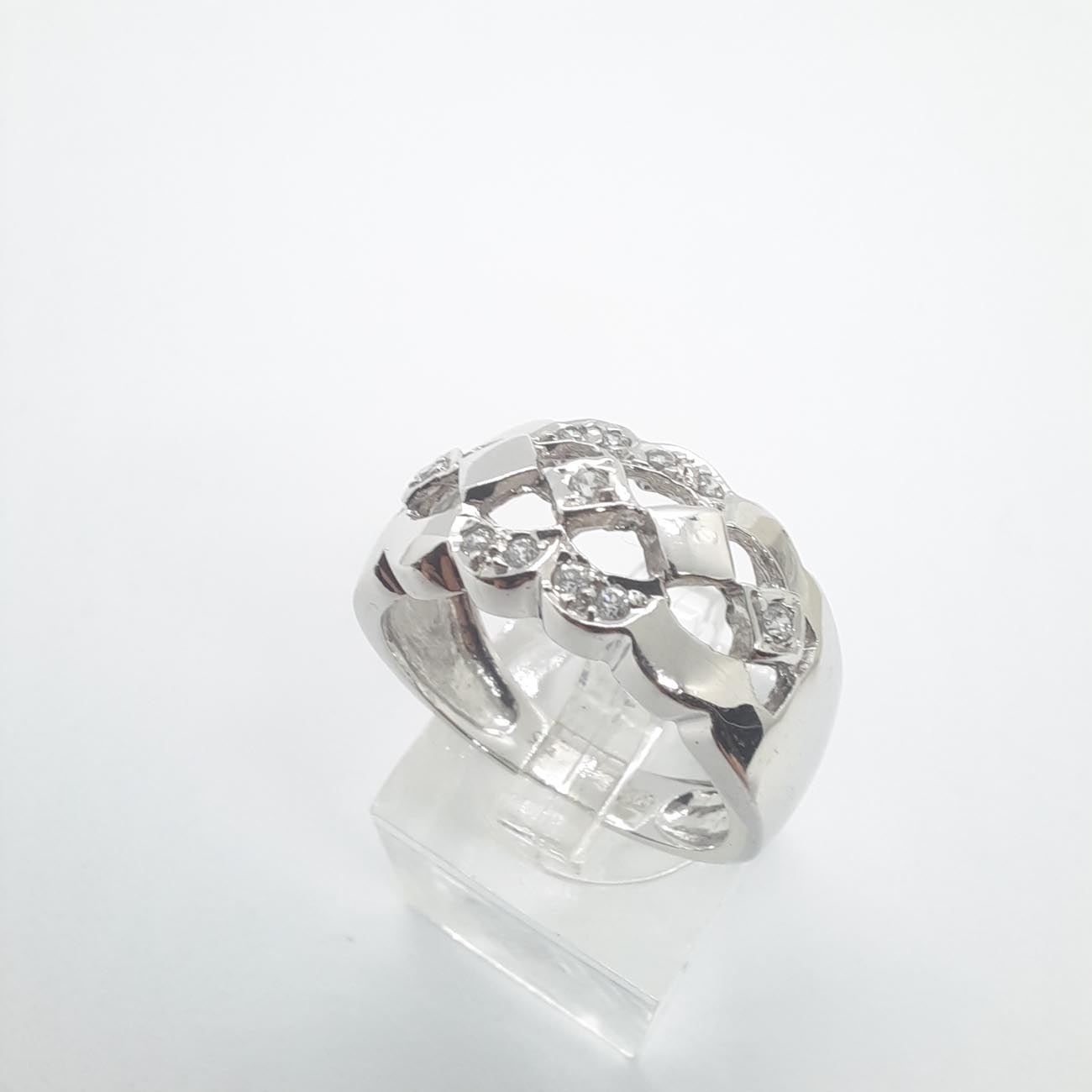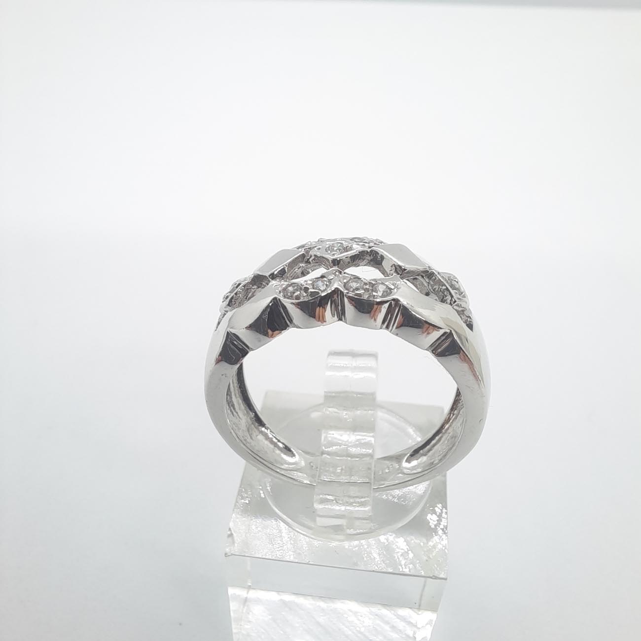 Μοναδικής ομορφιάς δαχτυλίδι , βαρύτιμο και πολυτελές, με περίτεχνο σκάλισμα, άφθονα λευκά ζιργκόν, φαρδιά λουστρέ επιφάνεια, από λευκόχρυσο 14 καρατίων. Ιδανικό δώρο αγάπης!